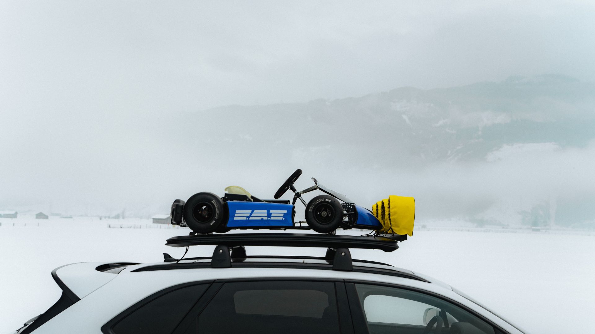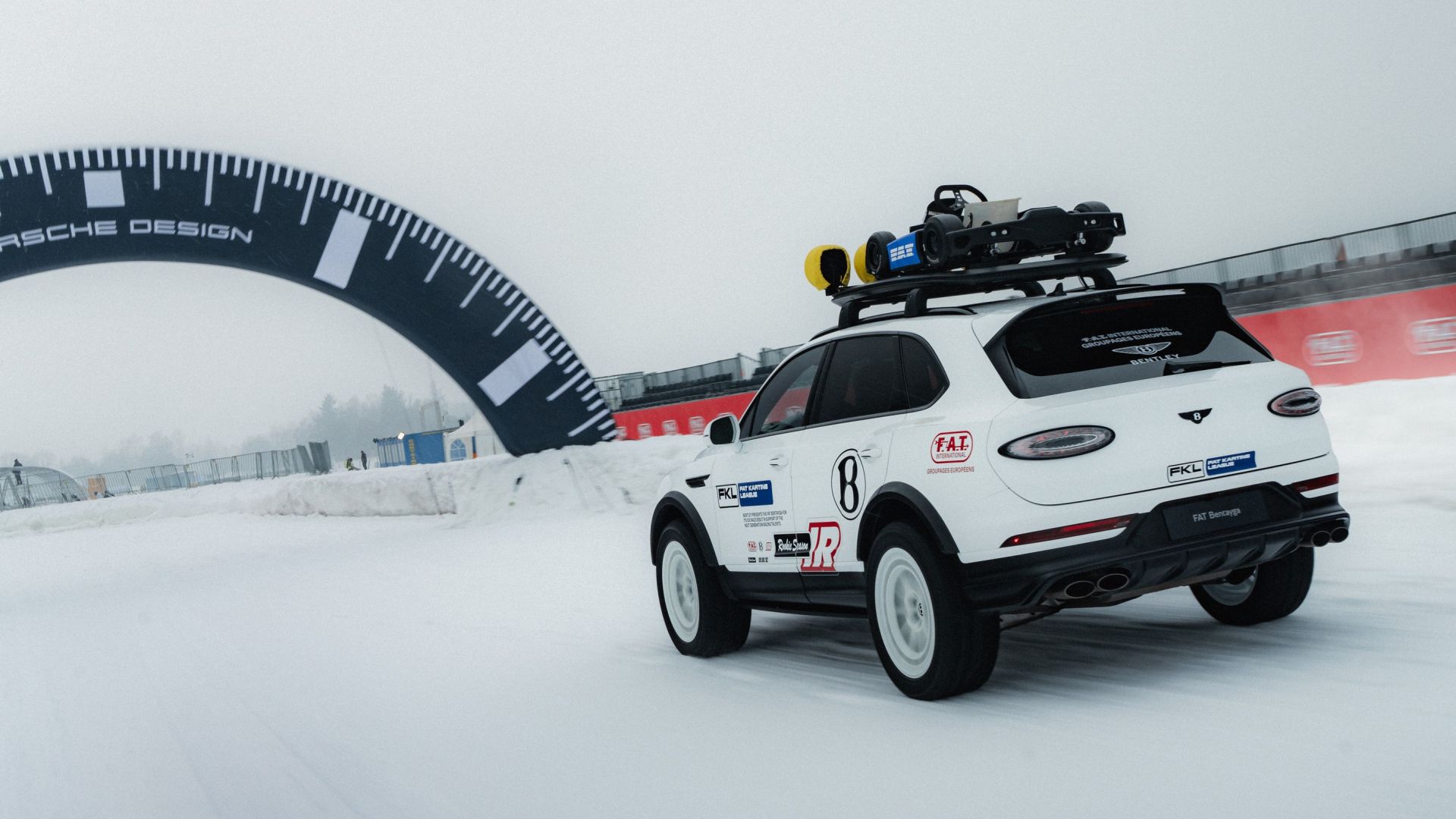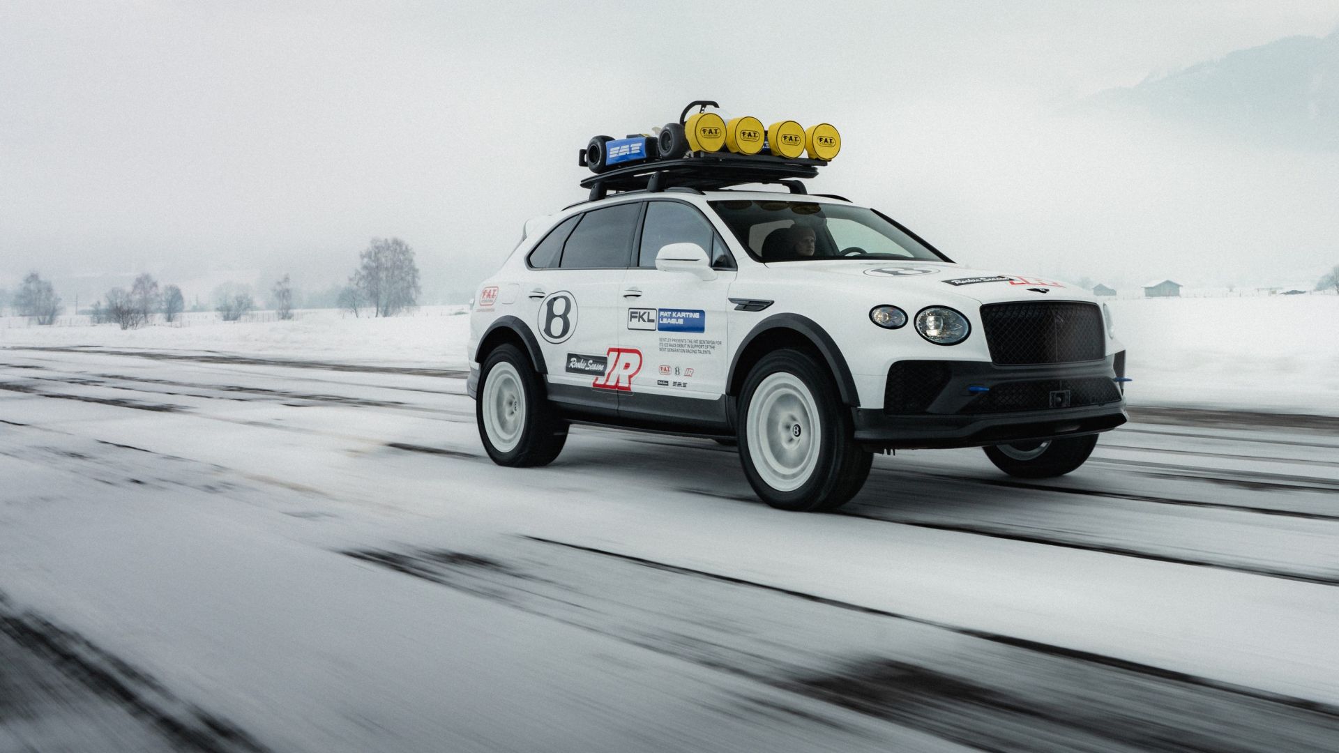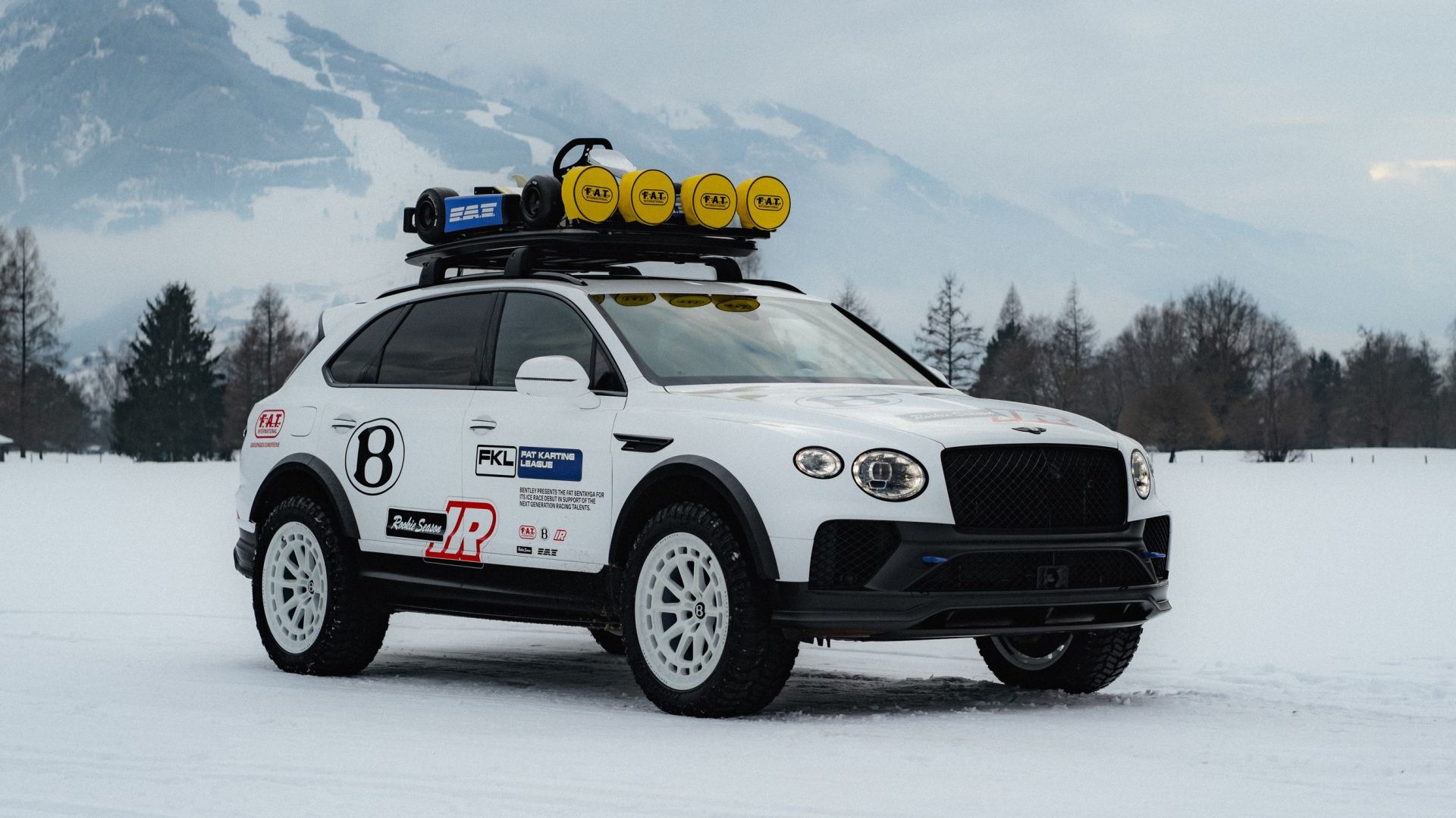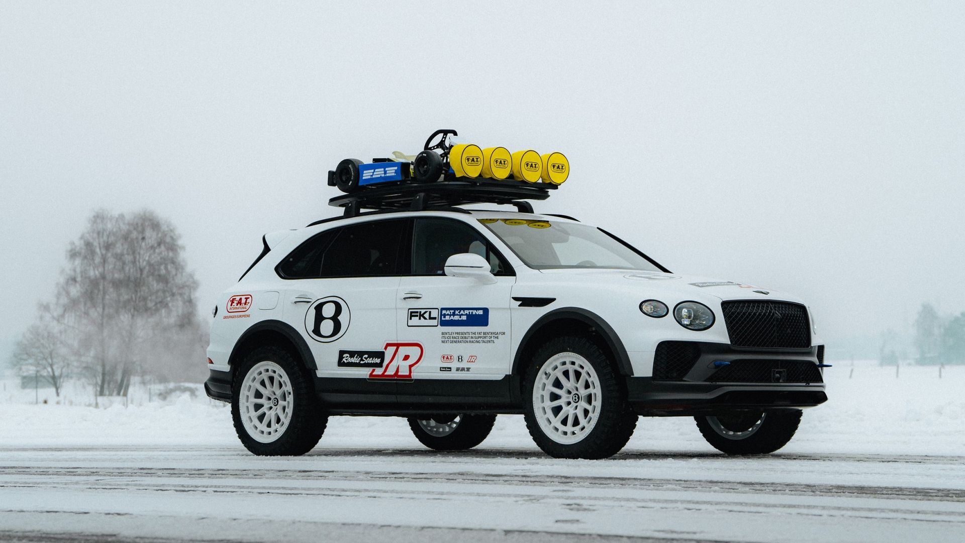 Il look resta funzionale, con portapacchi sul tetto e quattro fari aggiuntivi per le avventure off-road più estreme. Per dare un’idea delle capacità di carico, Bentley ha piazzato sul tetto un go-kart elettrico “taglia Bambino”, usato nella FAT Karting League.