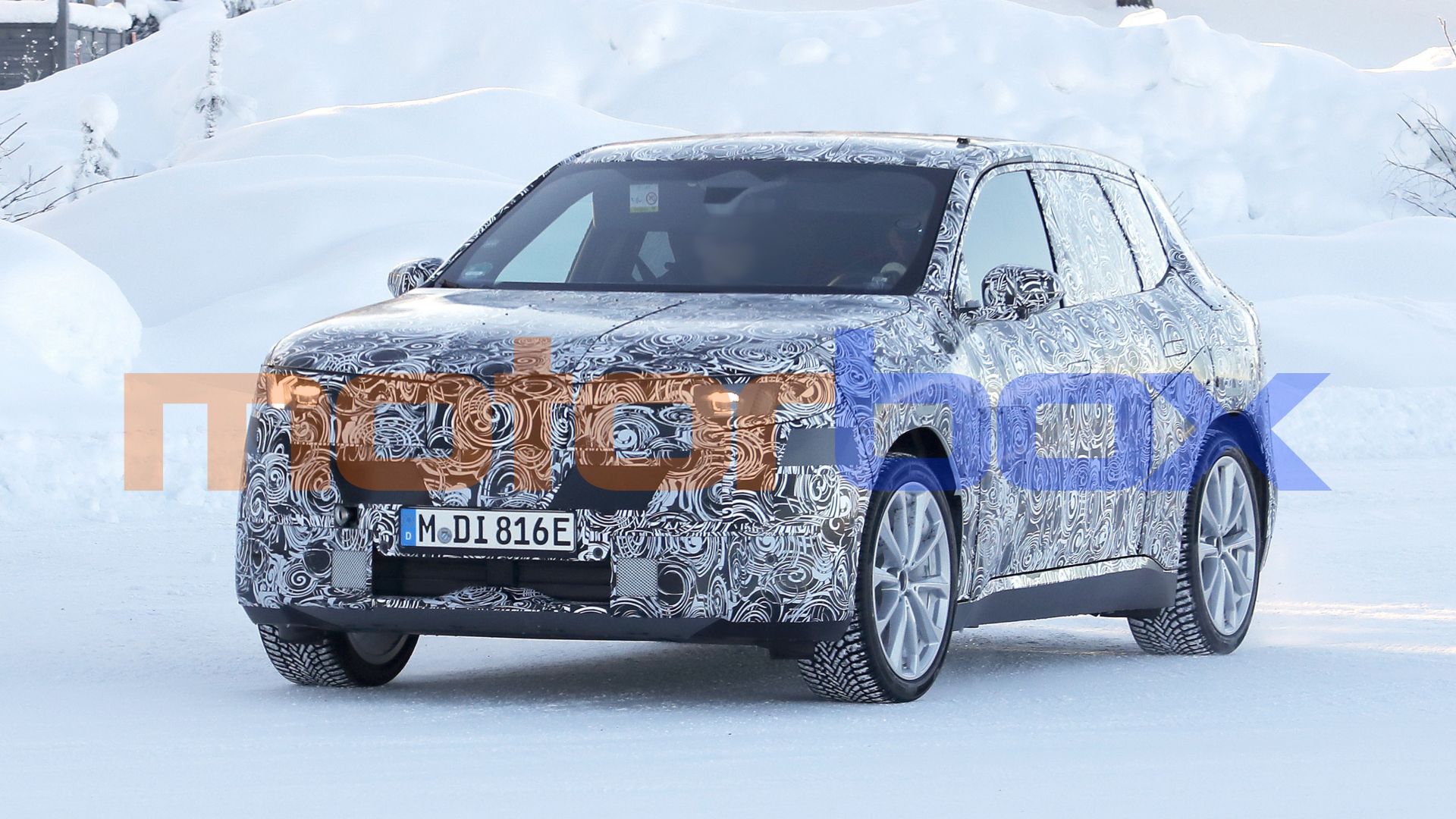 Le prime foto spia della iX1 elettrica sotto pesante camuffamento mostrano già i nuovi dettagli: calandra con doppio rene alto e sottile e fari completamente ridisegnati, collegati da pannelli contrastanti che potrebbero avere retroilluminazione.