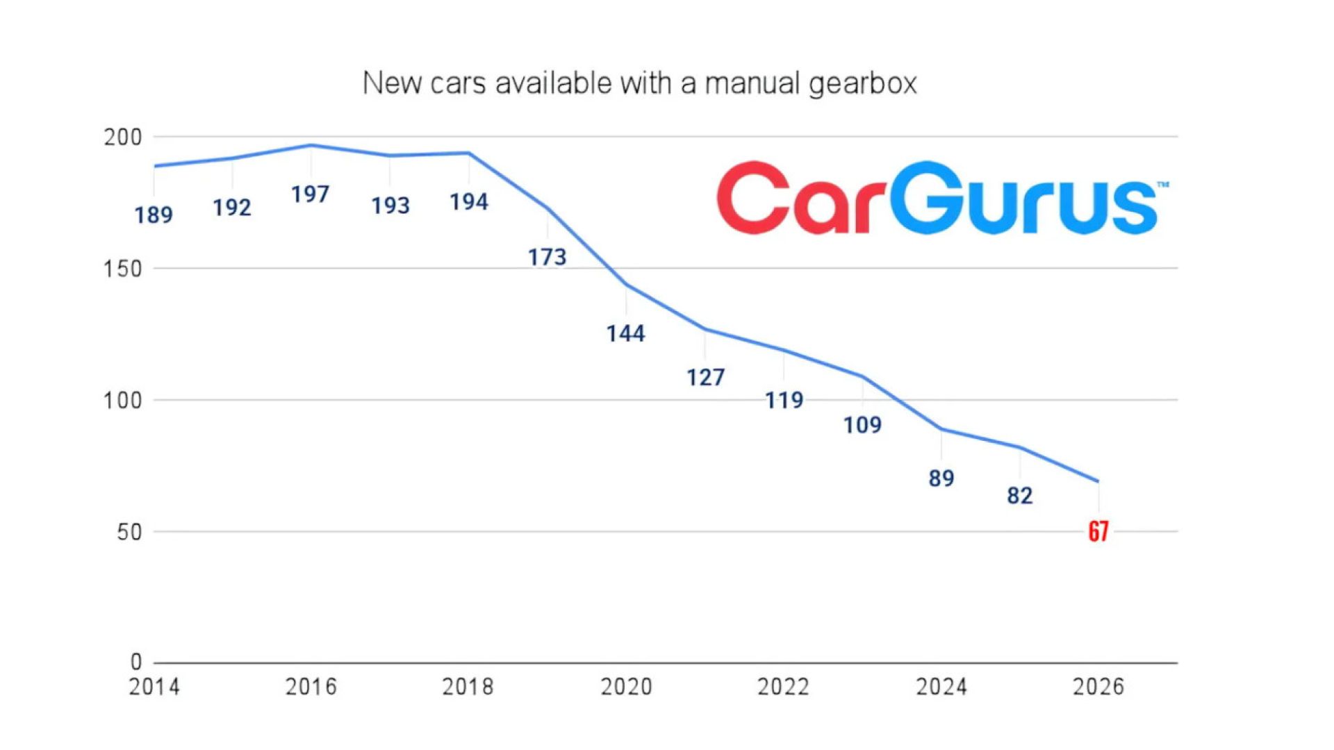 Secondo una ricerca di CarGurus, piattaforma di compravendita di auto che opera anche sul mercato italiano (guarda la homepage di CarGurus), nel 2026 saranno disponibili solo 67 modelli nuovi con trasmissione manuale, contro gli 82 dell’anno precedente in Regno Unito.