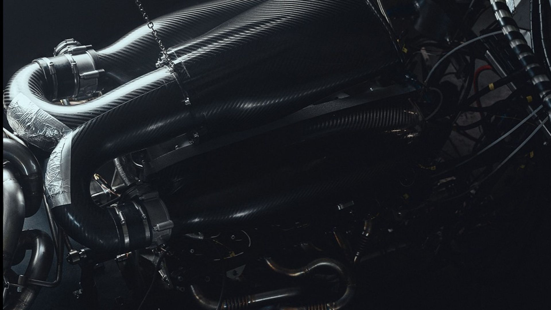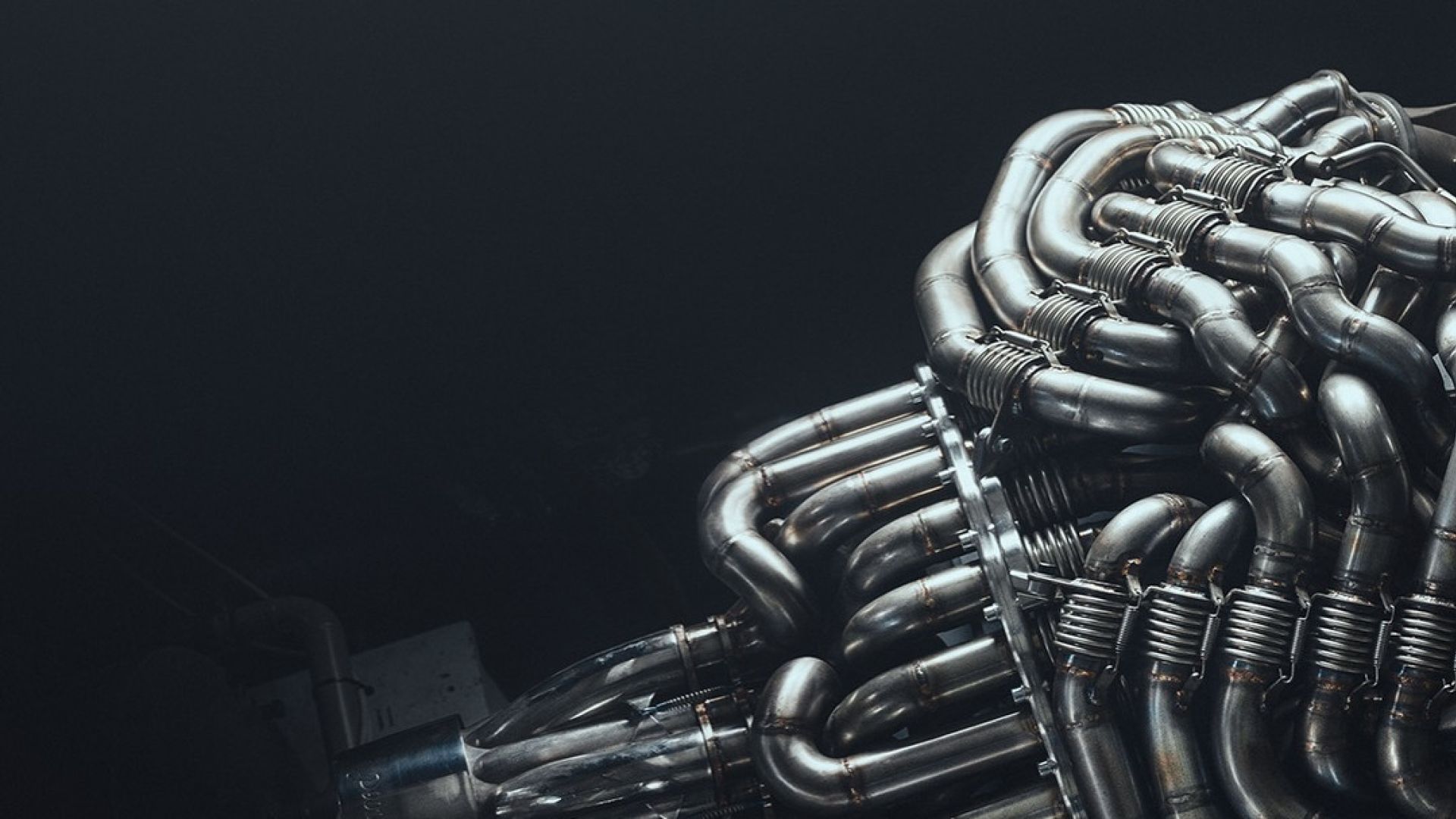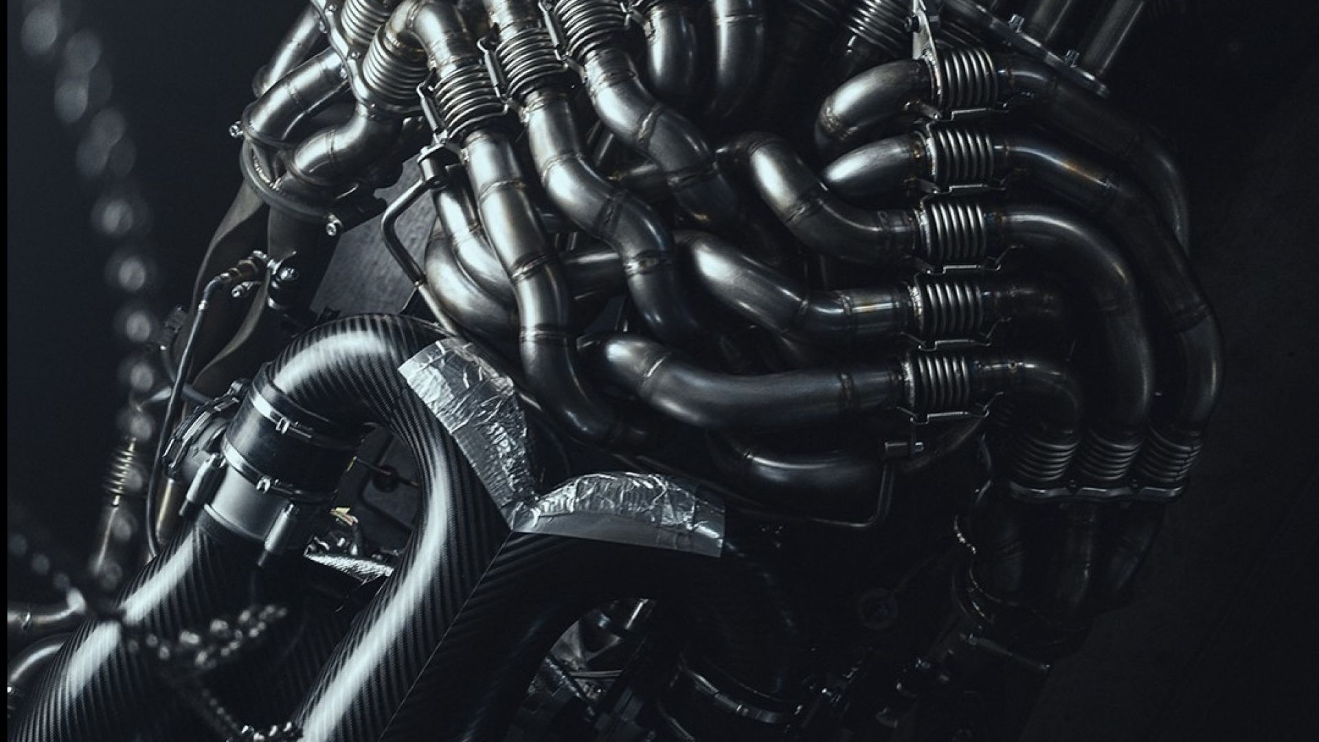 Non sono le budella di un extraterrestre, è lo sfogo di un V12 aspirato da 6,2 litri che urla fino a 12.300 giri e sputa fuori 900 cavalli bruciando esclusivamente carburante sintetico carbon neutral.