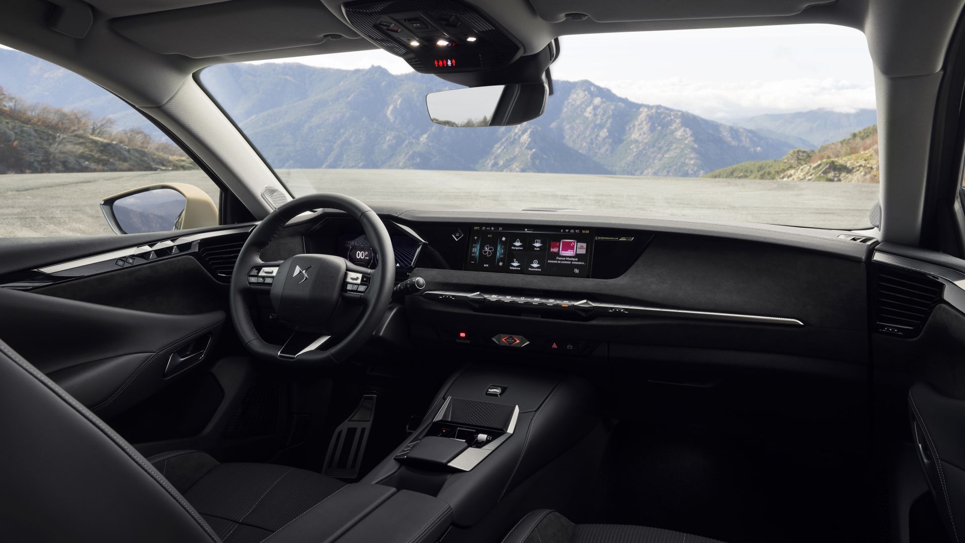 All’interno, l’ambiente presenta sedili in Alcantara, una plancia rivestita nello stesso materiale e un monogramma DS Performance Line che caratterizza lo spazio in maniera uniforme.