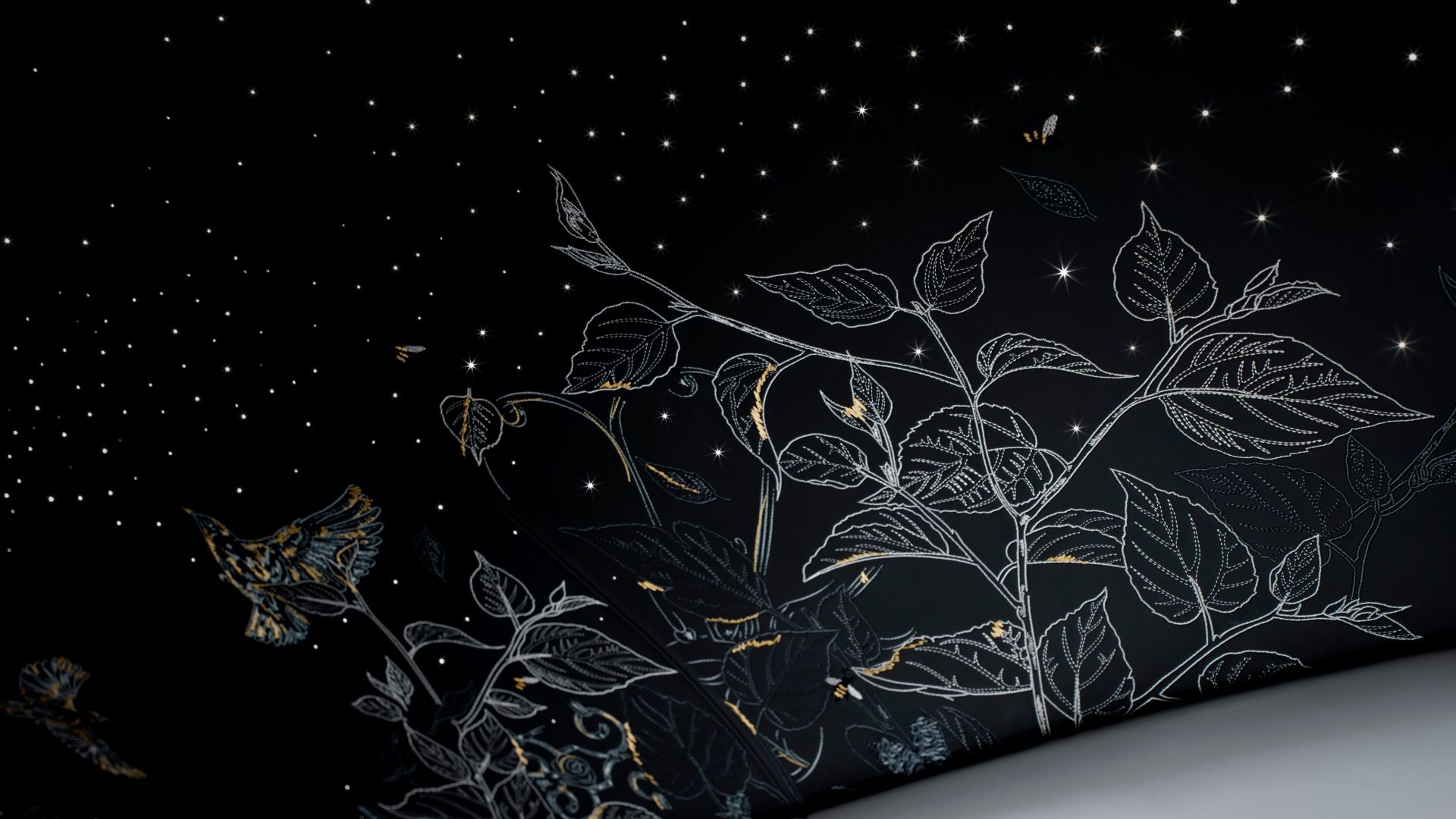 Niente è lasciato al caso: le portiere ospitano pannelli in Blackwood lavorato con tecniche miste - incisione laser, stratificazione 3D e foglia d’oro - per creare illusioni ottiche e profondità.