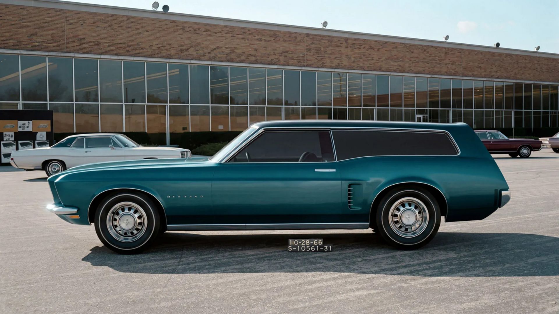 Tra i soggetti scelti c'è una clay model del 1963 di una Mustang berlina a quattro porte - sì, hai letto bene, una Mustang con quattro porte - che nella realtà non è mai arrivata in produzione, e che qui viene ''resuscitata'' in un improbabile Intense Lime Yellow Metallic.