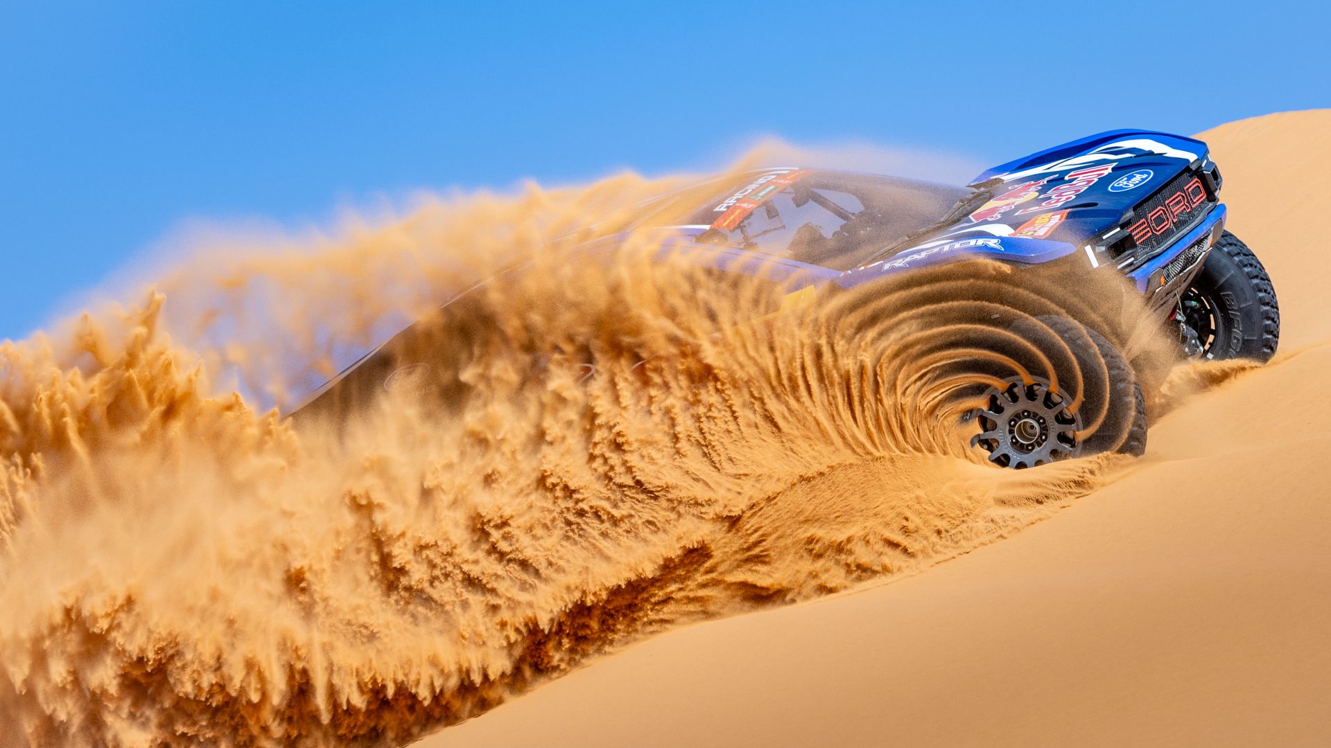 Lo scatto che cattura una geometrica spirale di sabbia uscire dalla ruota del Ford Raptor T1+ impegnato alla Dakar 2026 è maledettamente reale. E a gennaio abbiamo già una delle foto motorsport più iconiche dell’anno. Anzi: due.
