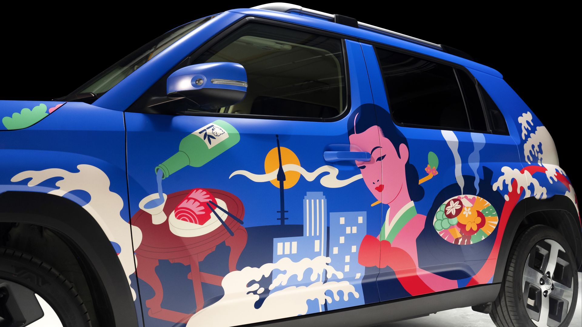 La piccola Inster è stata completamente trasformata per l’occasione: street art coreana firmata Yoy Han sulla carrozzeria, luci soffuse e un’atmosfera intima all'interno, che mescola design urbano e cultura orientale. Un esperimento a metà tra arte, marketing e lifestyle, perfettamente in linea con lo spirito innovativo del marchio coreano.