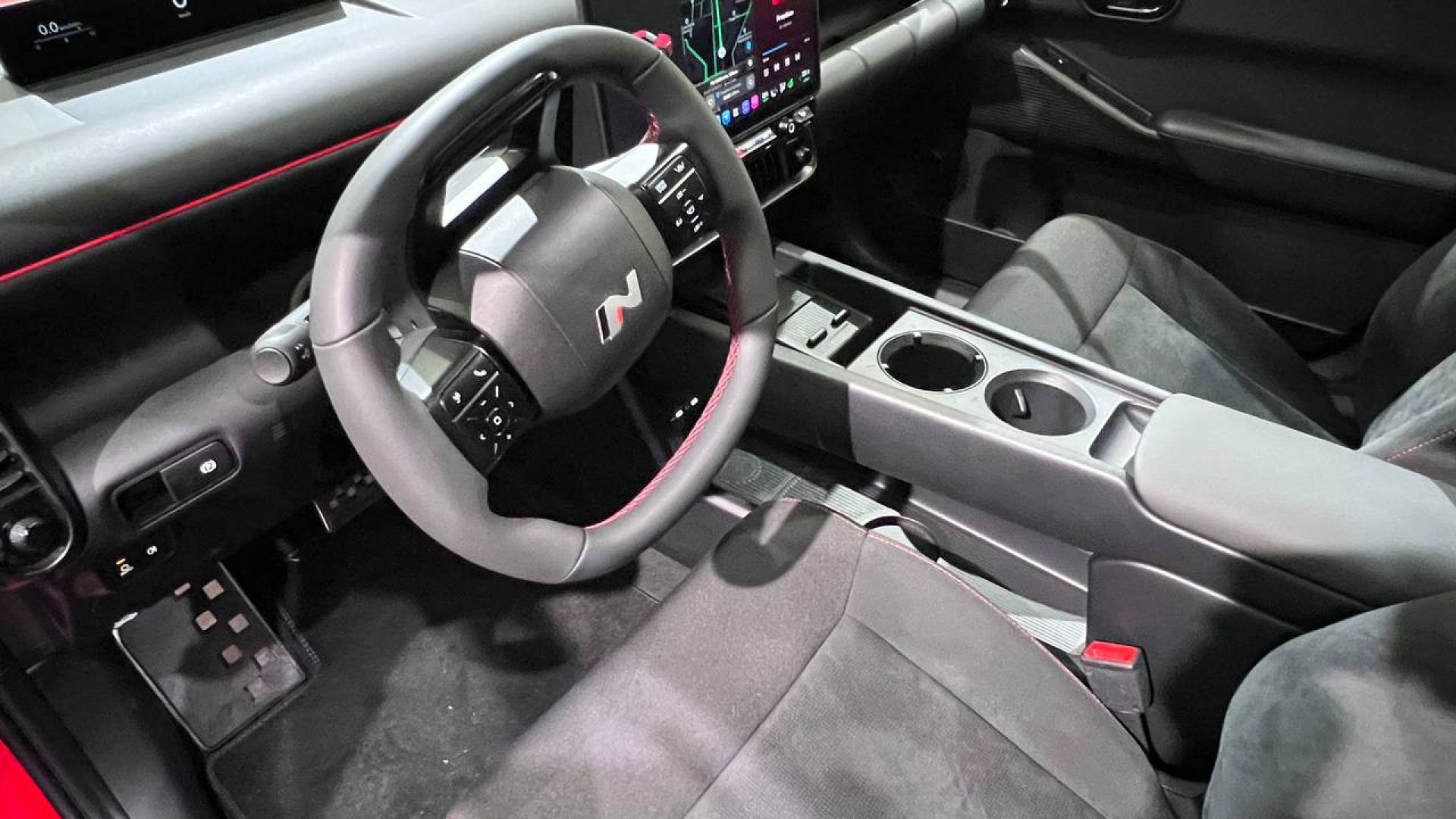 Lo stile della plancia non è eccessivamente minimalista e troviamo alcuni comandi fisici per gestire funzioni come il climatizzatore. Chiaramente non manca la tecnologia. Dietro al volante multifunzione e in posizione rialzata c'è un sottile quadro strumenti digitale. Centralmente sulla plancia troviamo invece il display dell'infotainment da 12,9 o 14,6 pollici. Nuova IONIQ 3 è il primo modello Hyundai in Europa a essere dotato del sistema di infotainment Pleos Connect, basato su Android Automotive.