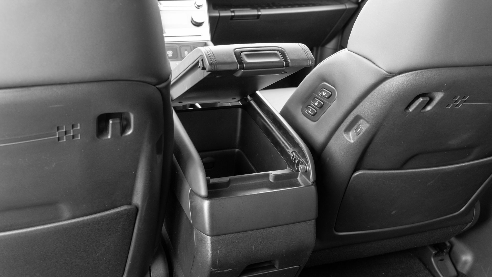 Soluzioni furbe e tanti portaoggetti distinguono entrambi i modelli, ma anche qui la Santa Fe alza l’asticella. Al di là dei vani sparsi in abitacolo, l’appoggiabraccia nasconde un portaoggetti super spazioso, che si può aprire sia da davanti sia da dietro. Inoltre, ospita un vano posteriore altrettanto capiente. Insomma, un vero mobiletto per riporre ogni cosa.