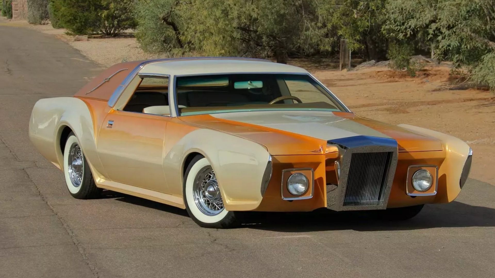 Il resto dell’auto, per quanto teatrale, passa in secondo piano. Perché quando apri la porta e ti trovi davanti un salotto vintage arredato da un marmista di Beverly Hills (la pietrificazione fu opera della Hollywood Coach Builders), il cervello smette di registrare tutto il resto.