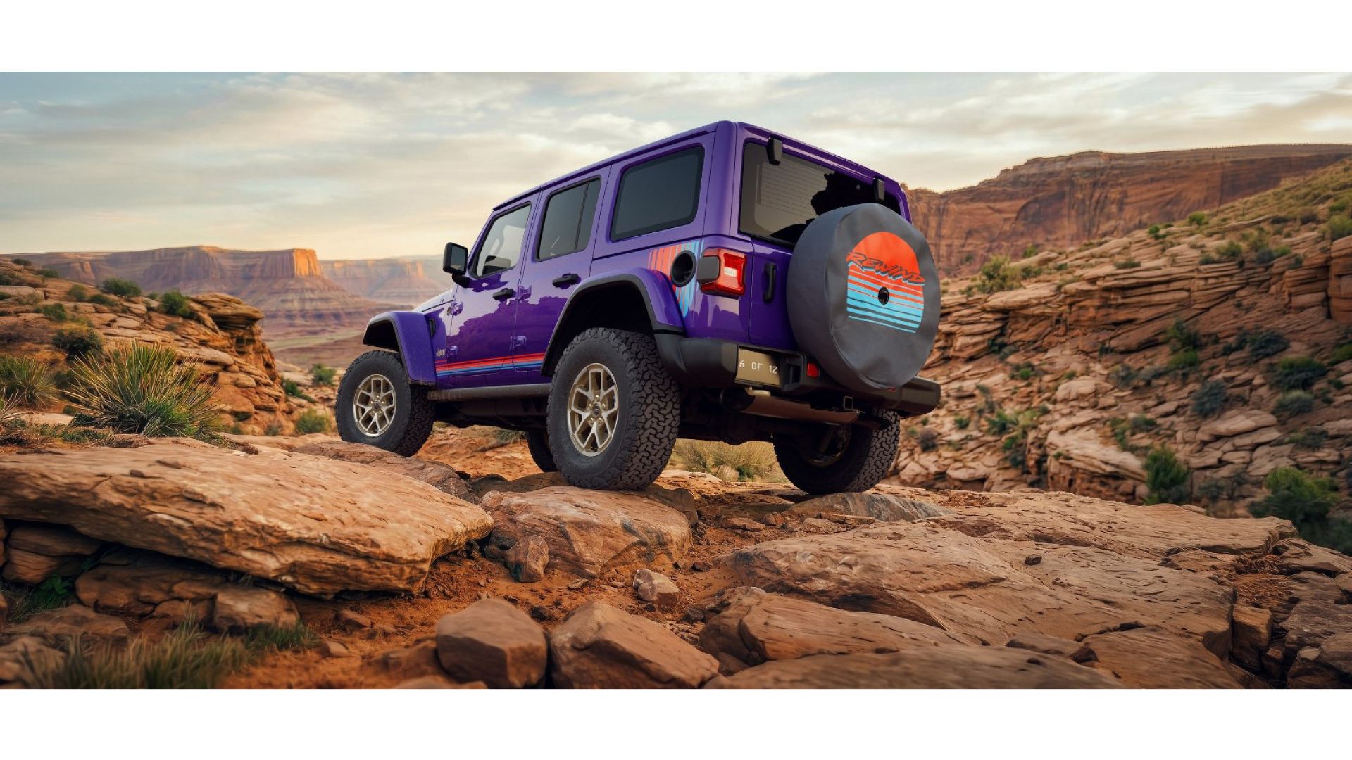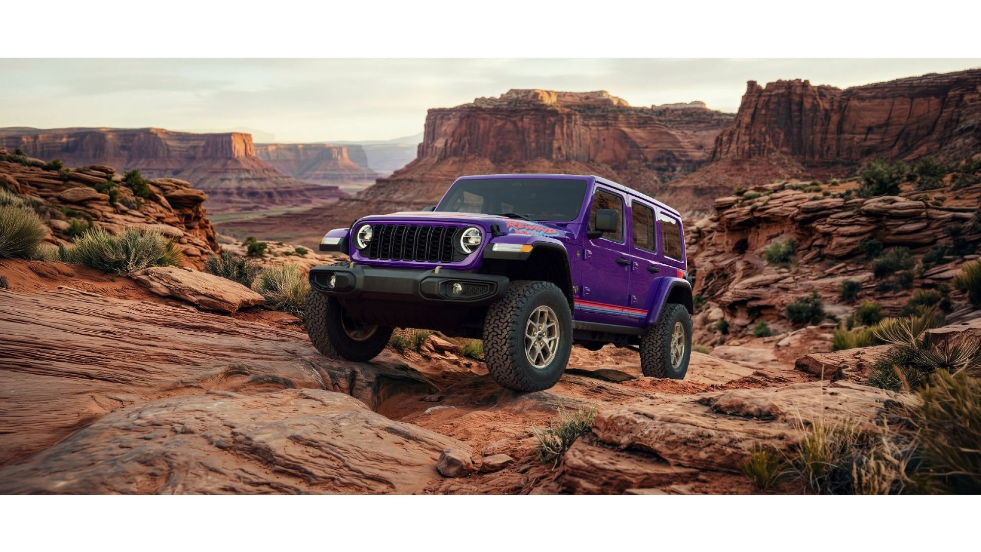 Gladiator e Wrangler Rewind erano stati anticipati da un concept all'Easter Jeep Safari del 2025 e si caratterizzano per la presenza di una livrea ispirata agli anni '80 e '90, con grafiche geometriche a 8 bit e colori vivaci dell'era dei mixtape e dei pattini a rotelle. I due modelli nell'esclusivo allestimento Rewid si potranno avere nei colori Bright White, Granite Crystal, Anvil, Black, Reign, Hydro Blue, Earl Gray, e Joose. In tutti i casi, in abbinamento con strisce rosse e blu, nonché a una decalcomania sul cofano che presenta la scritta ''Rewind''.