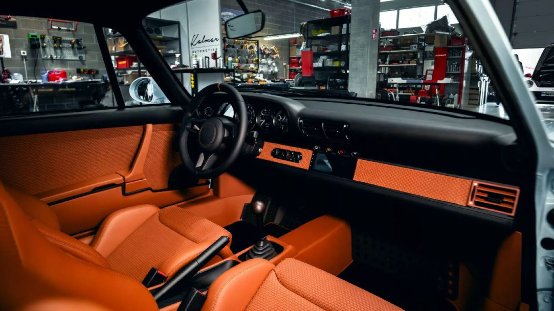A differenza di altri restomod, Kalmar sceglie l’evoluzione stilistica. Nuovo spoiler posteriore, frontale ispirato alle 911 classiche e richiami alla 911R del 1967 definiscono un’estetica coerente e senza eccessi.