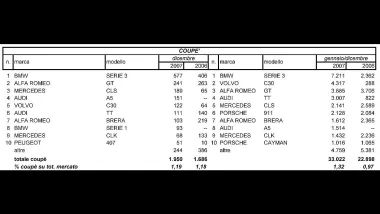 SPORTIVE IN CRESCITAChiude quasi in pari la Ferrari (+0,5%) che nel 2007 ha immatricolato in Italia 611 vetture, quasi le stesse della Maserati (646) che però chiude l'anno con un +13,53% rispetto al 2006. E ancora meglio ha fatto la Lamborghini, che con il + 32,2% e 197 vetture immatricolate ha festeggiato la chiusura dell'anno con i fuochi d'artificio. Niente a che vedere comunque con la Porsche, che pur se con un incremento dell'1,0% ha immatricolato in Italia 6.113 nuove unità.