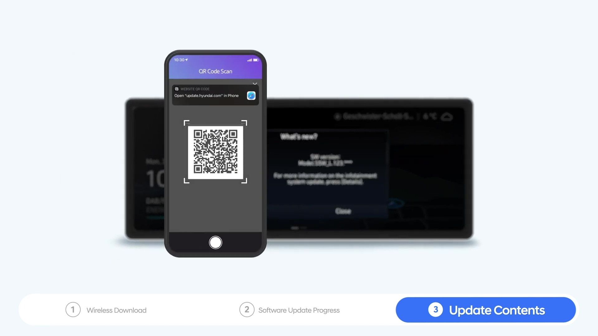 SENZA STOP Il processo di download e aggiornamento avviene in background, senza interruzioni di sorta: durante queste fasi è sempre possibile utilizzare tutte le funzioni del sistema multimediale e di navigazione. Al termine del processo di aggiornamento si riceve una notifica sullo schermo dell’auto, oppure sullo smartphone dove è eventualmente installata la app Bluelink di Hyundai.