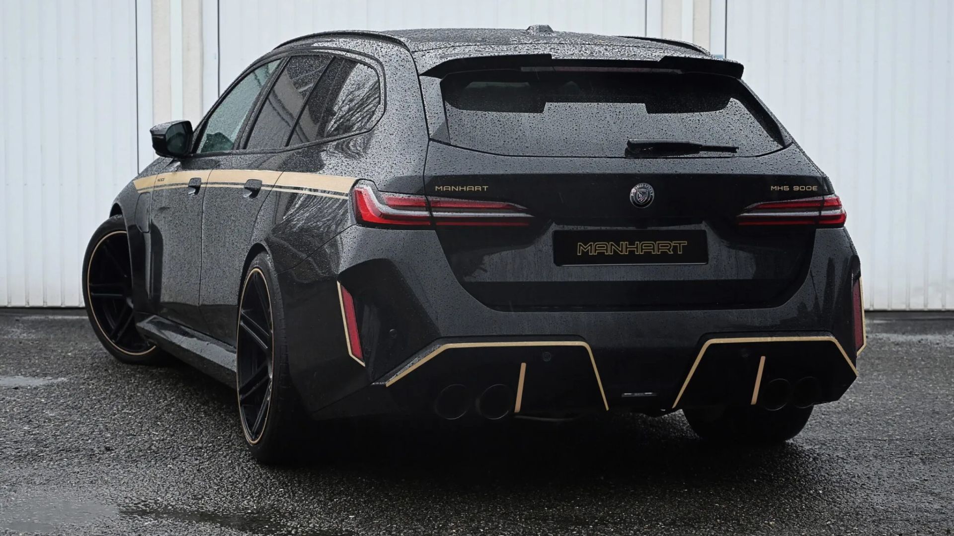 A differenza di alcuni preparatori che puntano sull'eccesso estetico, Manhart generalmente evita modifiche eccessive. MH5 900E può comunque contare su di un body kit che rende il suo look più aggressivo. L'aspetto non differisce troppo, comunque, dalla MH5 800E del 2024. Di conseguenza, le modifiche si limitano a paraurti anteriori e posteriori rivisti e più elaborati, insieme a una generosa quantità di inserti dorati. La BMW M5 Touring by Manhart si potrà avere con i cerchi forgiati Concave One di Manhart, disponibili nelle misure da 21 e 22 pollici con pneumatici anteriori 285/35 o 295/30 e, a scelta, pneumatici posteriori 305/30 o 315/30.