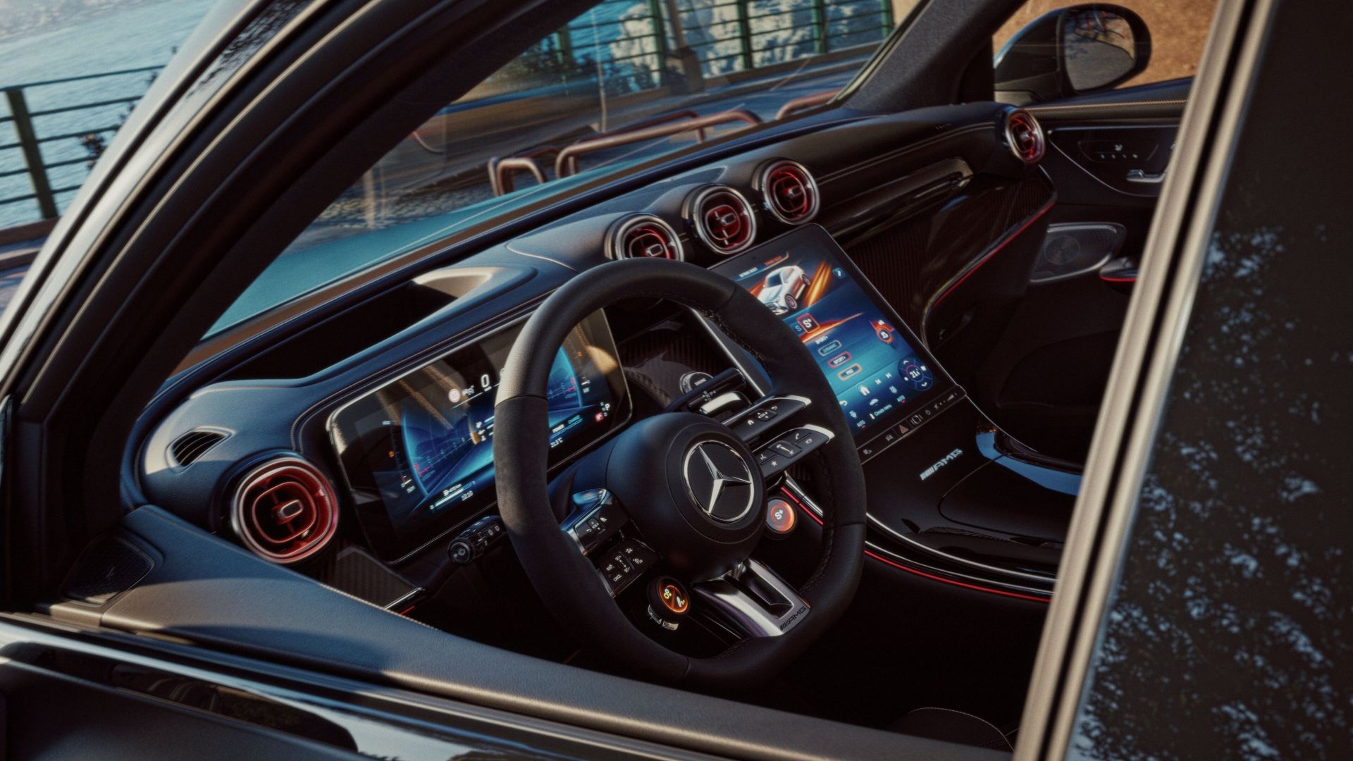 Fondamentale anche il sound: il nuovo impianto di scarico con risonatori dedicati amplifica la voce del sei cilindri, tra scoppiettii in rilascio, borbottii in accelerazione e le classiche “fucilate” AMG. L’intensità varia in base alla modalità di guida, mentre in opzione c’è l’AMG Real Performance Sound con valvole attive.