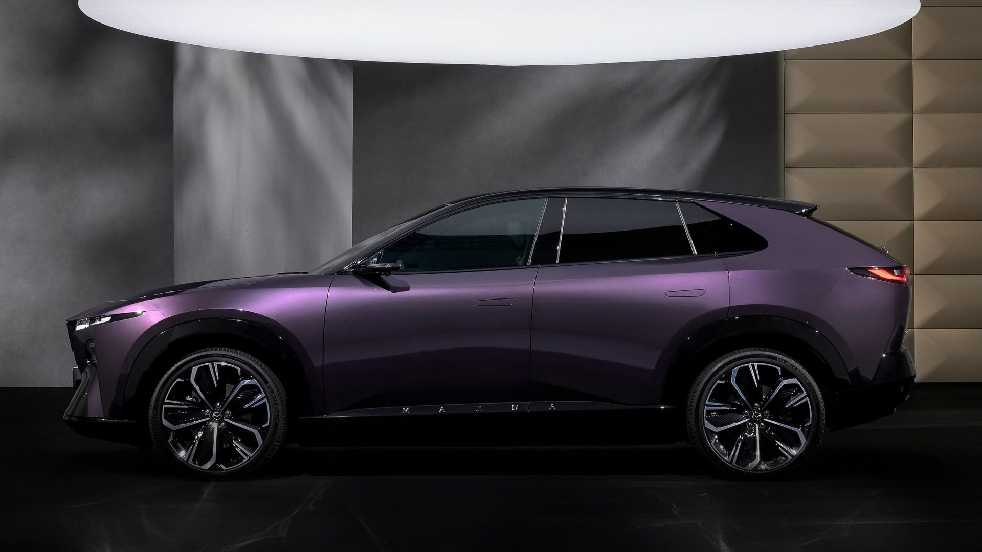 Spoiler anche sul terzo montante, soluzione studiata per migliorare l’aerodinamica. Il tetto scende deciso, le ruote di grande diametro riempiono i passaruota e il risultato è una silhouette muscolosa senza mai diventare aggressiva. Una Mazda, insomma, ma con un carattere nuovo.