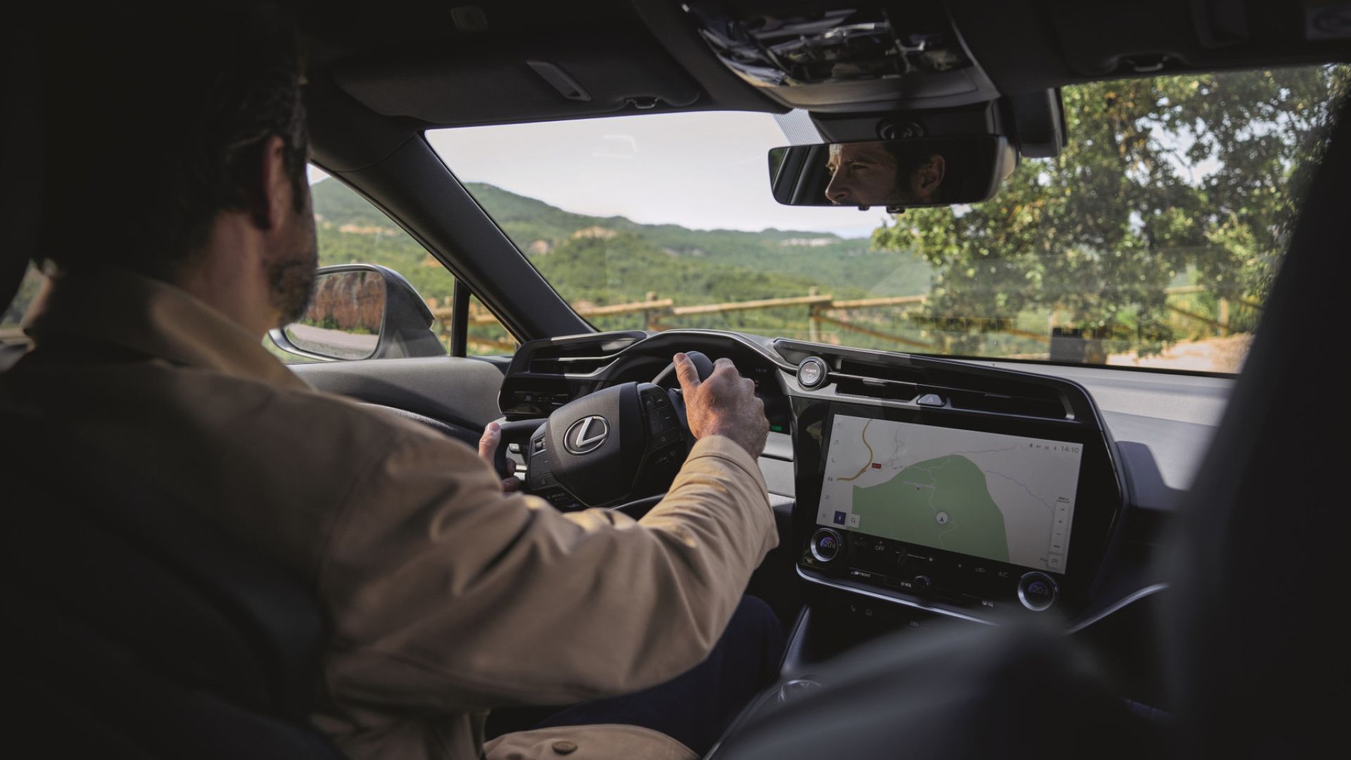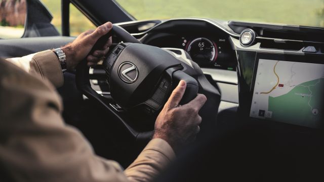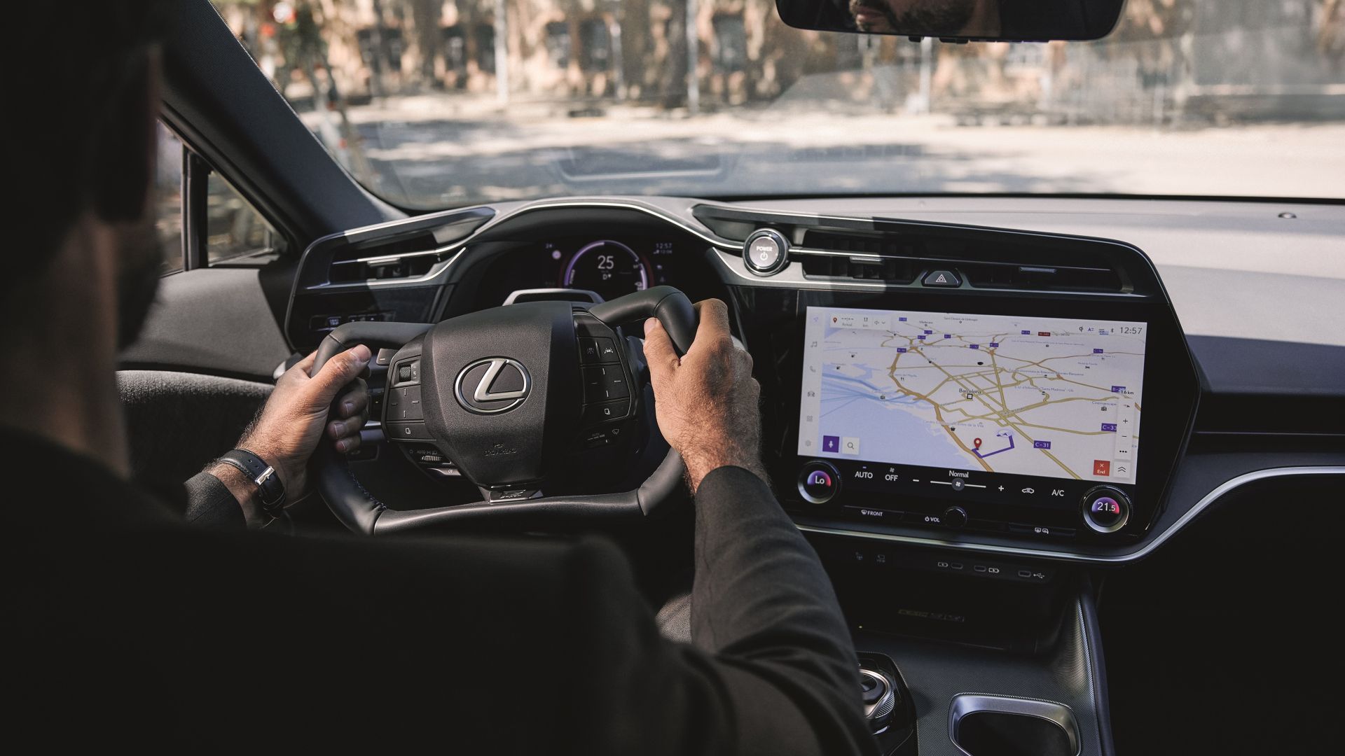 Il volante “yoke” aeronautico – in lingua Lexus: One Motion Grip – non è un vezzo estetico: grazie allo steer‑by‑wire, sostiene la Casa, l’angolo di sterzata si riduce a circa 200 gradi, eliminando quasi del tutto l’incrocio delle braccia.