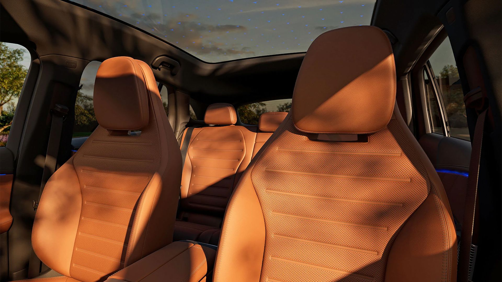 La ricetta funziona: GLC L arriva a 4,95 metri di lunghezza e soprattutto a 3,03 metri di passo, cioè 5,5 cm in più rispetto a GLC EV standard. Risultato: più spazio dietro, porte posteriori più lunghe, coda un filo più verticale e - sorpresa - la possibilità di avere tre file e sei posti.