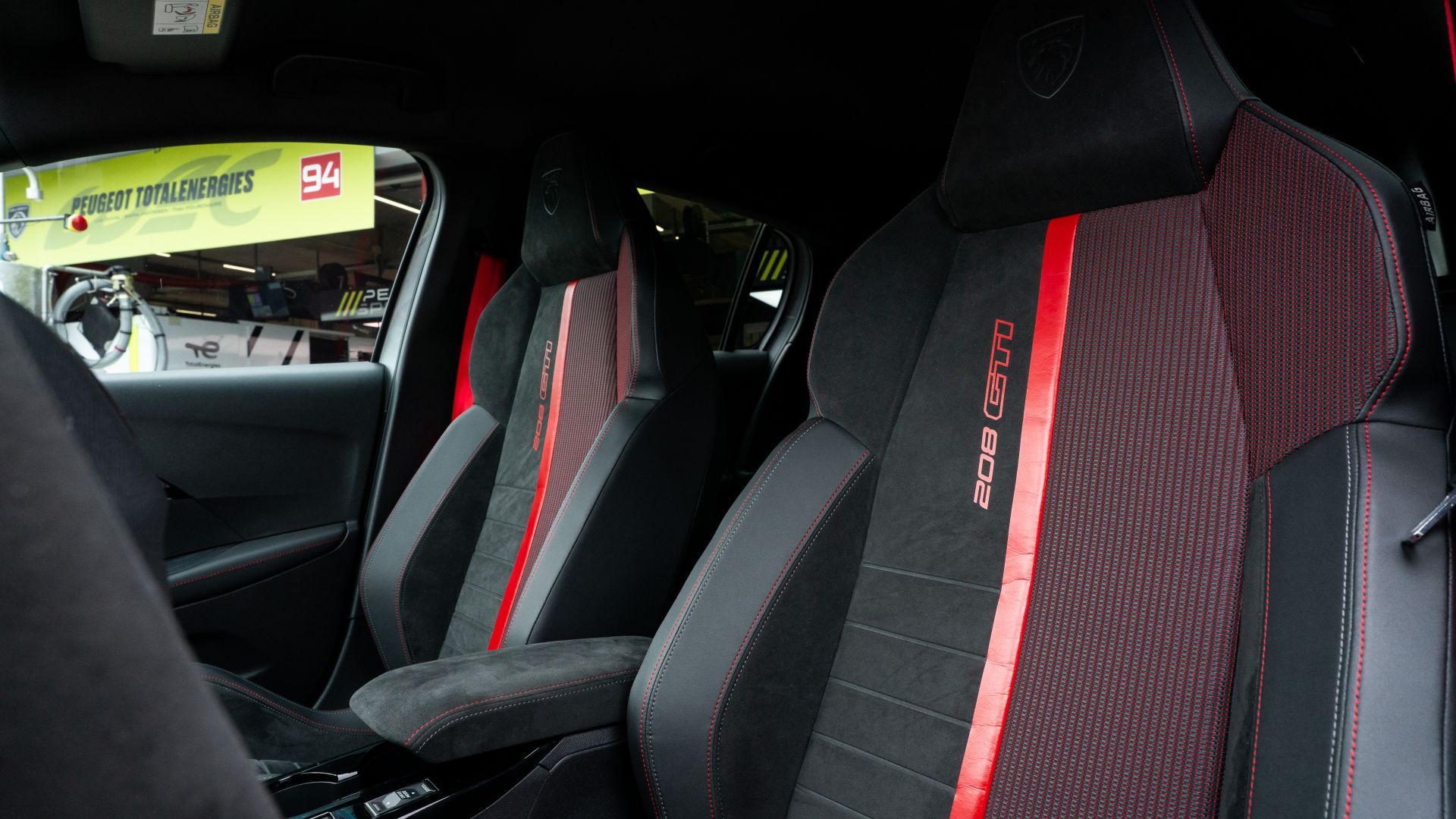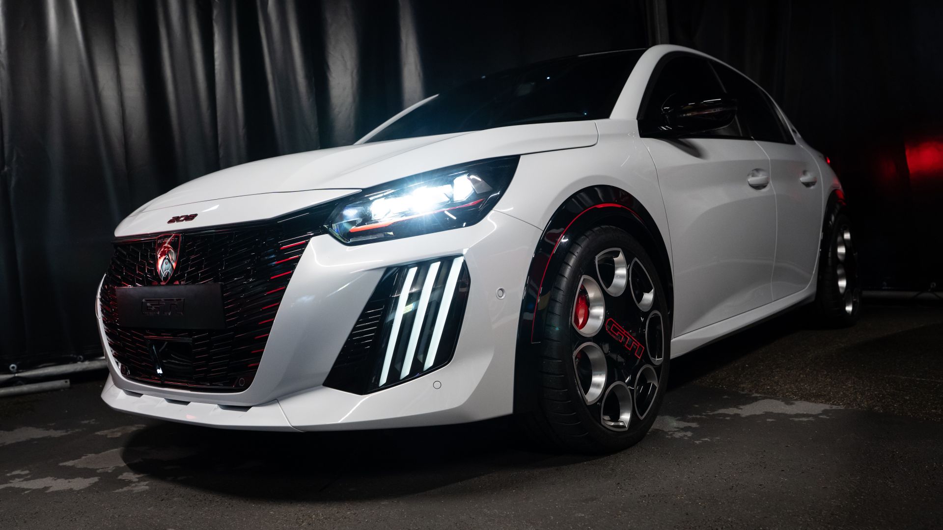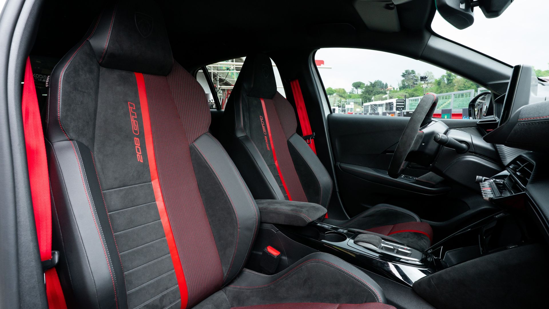 Ci si avvicina e la prima cosa che colpisce è la postura. Bassa - 30 mm in meno rispetto a 208 standard, lo sapevamo - ma soprattutto larga. Le carreggiate allargate (+56 mm all'anteriore, +27 mm al posteriore) non sono un dettaglio su carta: si vedono. I passaruota rigonfi, bordati da quella sottile linea rossa che cita esplicitamente ''nonna'' 205 GTi, danno all'auto una presenza che francamente non ti aspetti, da qualcosa che misura poco più di quattro metri.