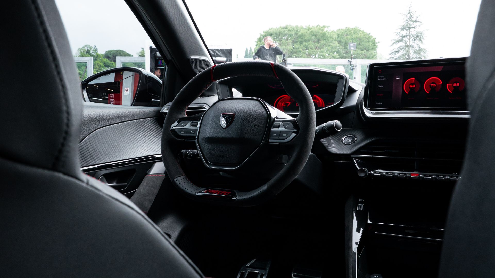 I sedili anteriori con poggiatesta integrati rendono omaggio ai sedili della 205 GTi 1.9, mentre la rete laterale cita la 1.6: livello di dettaglio che farà innamorare gli appassionati e lasciare indifferente chiunque altro.
