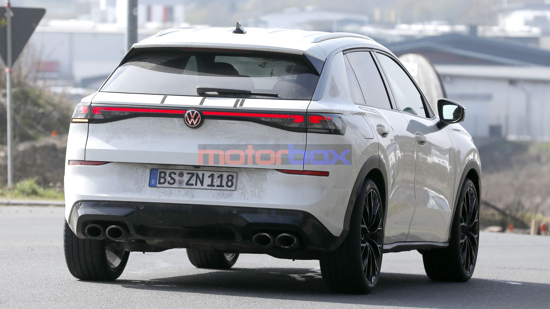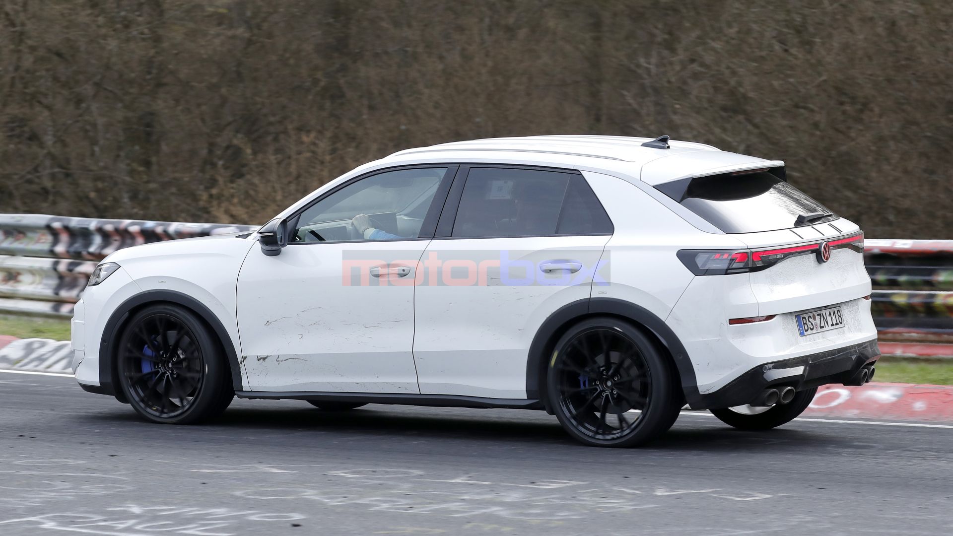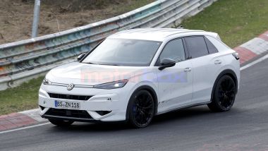 Continua lo sviluppo della nuova Volkswagen T-Roc R, versione più sportiva della seconda generazione del crossover tedesco. Questa volta, la casa automobilistica ha scelto le curve del Nürburgring per mettere a punto l'assetto di questo modello e mettere alla frusta la sua meccanica. La nuova tornata di foto spia permette quindi di vedere in azione la T-Roc R tra le curve dell'inferno verde. Come possiamo osservare, il prototipo del crossosver sportivo presenta una colorazione bianca con un livello di camuffamento ridotto al minimo, con adesivi collocati ai ''posti giusti'' per celare alcuni dettagli del suo design. Si nota subito comunque che si tratta della T-Roc R in virtù del suo body kit dedicato che renderà il suo aspetto più aggressivo.