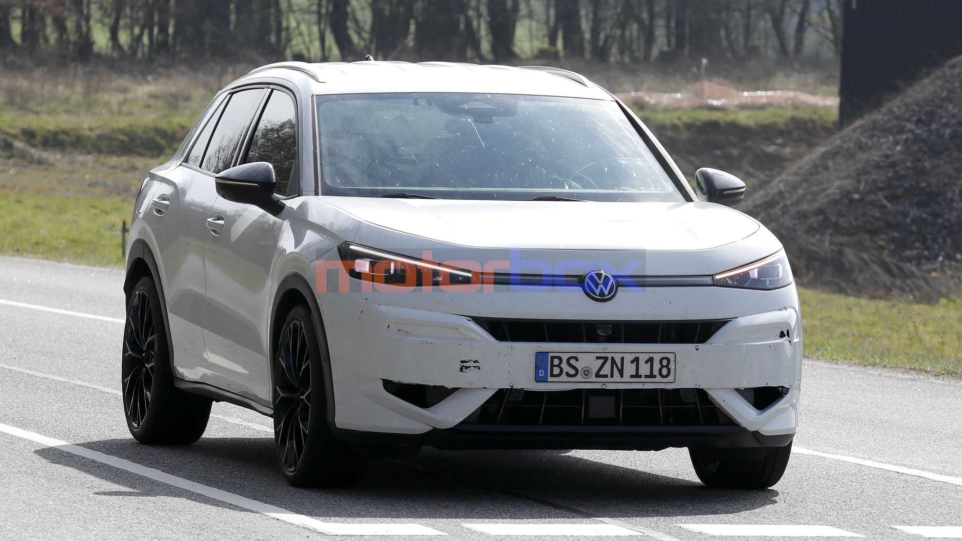 Le prese d'aria più grandi e spigolose che fiancheggiano la griglia centrale sono chiaramente visibili attraverso il camuffamento e assieme alla nuove minigonne permetteranno di enfatizzare la maggiore sportività di questo modello. Dalla vista laterale si può notare chiaramente che anche lo sbalzo anteriore sarà maggiore, rendendo la nuova T-Roc R più lunga di qualche millimetro, dato che il paraurti è più prominente. Sempre guadando di profilo, possiamo notare la presenza di un impianto frenate con pinze di colore blu tipiche dei modelli Volkswagen R. Guardando bene, si nota che il crossover adotta cerchi in lega da 19 pollici, mentre dietro sono presenti 4 terminali di scarico. L'abitacolo non si vede ma non dovrebbero mancare elementi dedicati come sedili sportivi e rivestimenti specifici per ricordare il DNA di questo modello. Curiosità, il muletto protagonista delle foto spia adotta il sistema di illuminazione ''LED Matrix IQ. Light''.