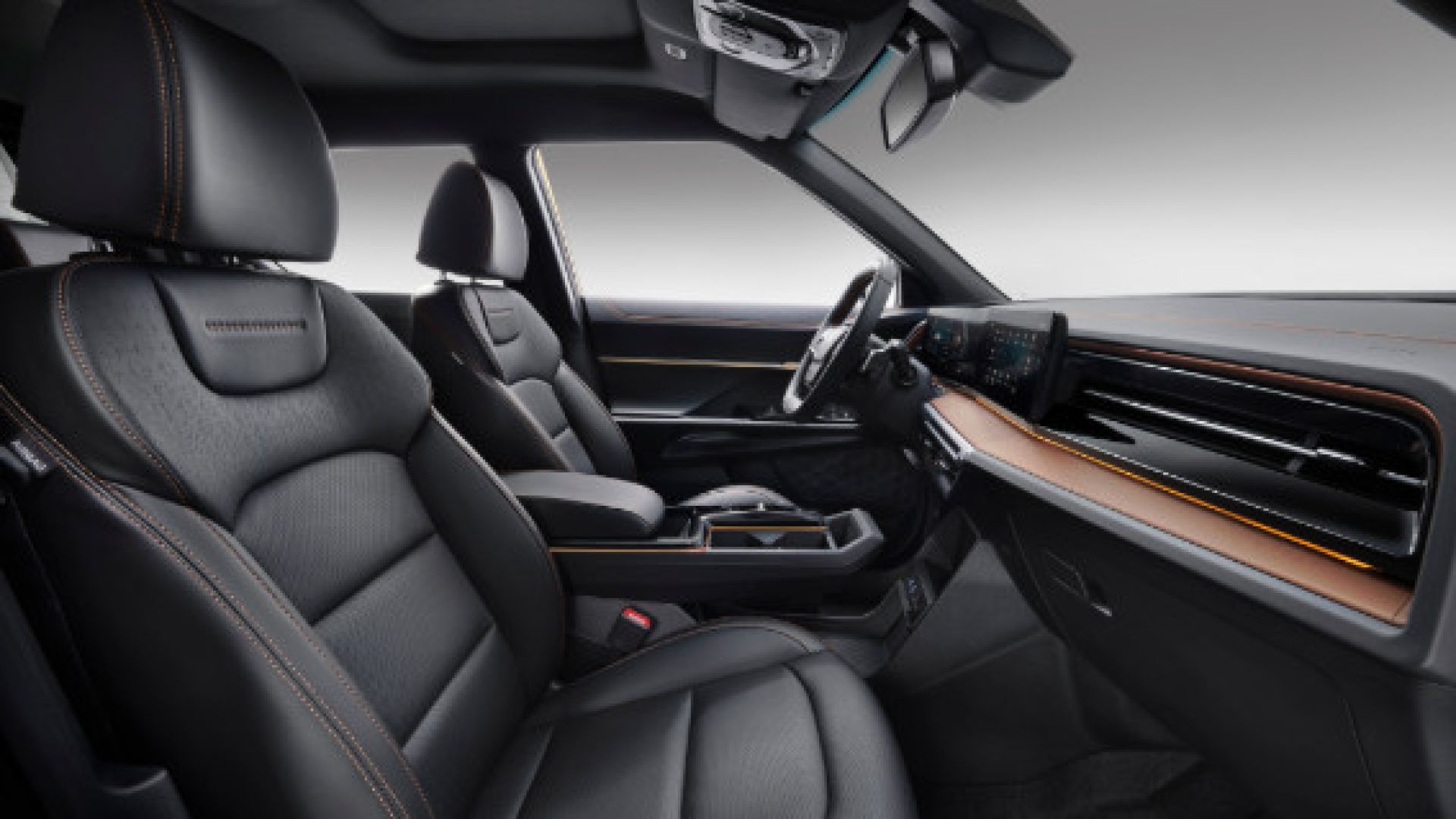 Gli interni offrono un’abitabilità superiore alla media del segmento. La seconda fila garantisce 85 cm di spazio per le gambe e oltre un metro sopra la testa. I sedili posteriori scorrono di 80 mm, possono reclinarsi fino a 32 gradi e sono divisibili 60:40 per una gestione modulare del carico. La plancia ospita un display digitale da 12,3 pollici abbinato a un touchscreen di pari misura, gestito dalla piattaforma infotainment Athena 2.0, compatibile con Apple CarPlay e Android Auto. Molto completa la dotazione di ADAS per la guida assistita.
