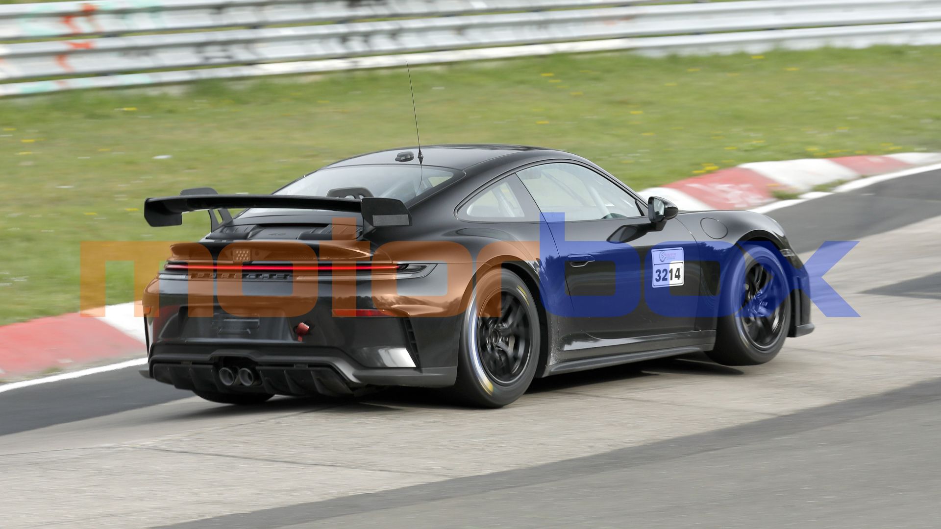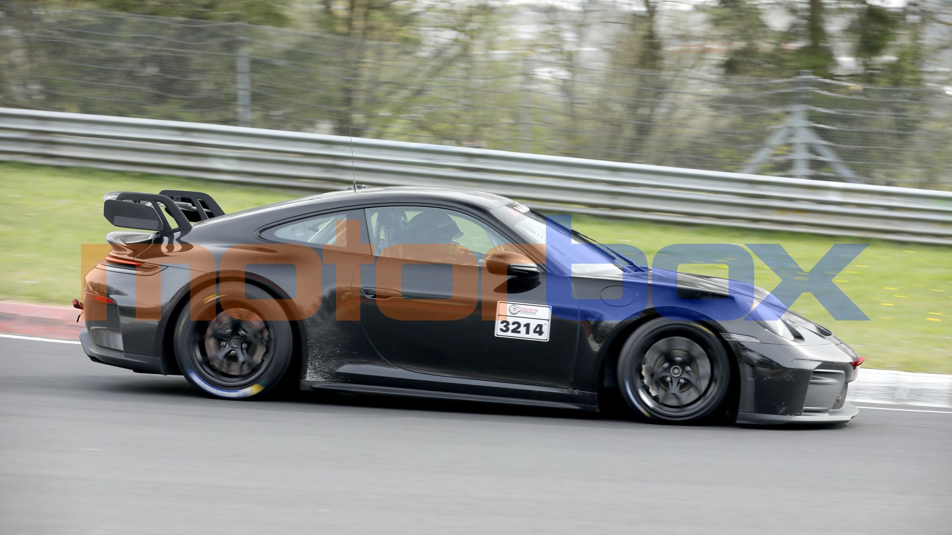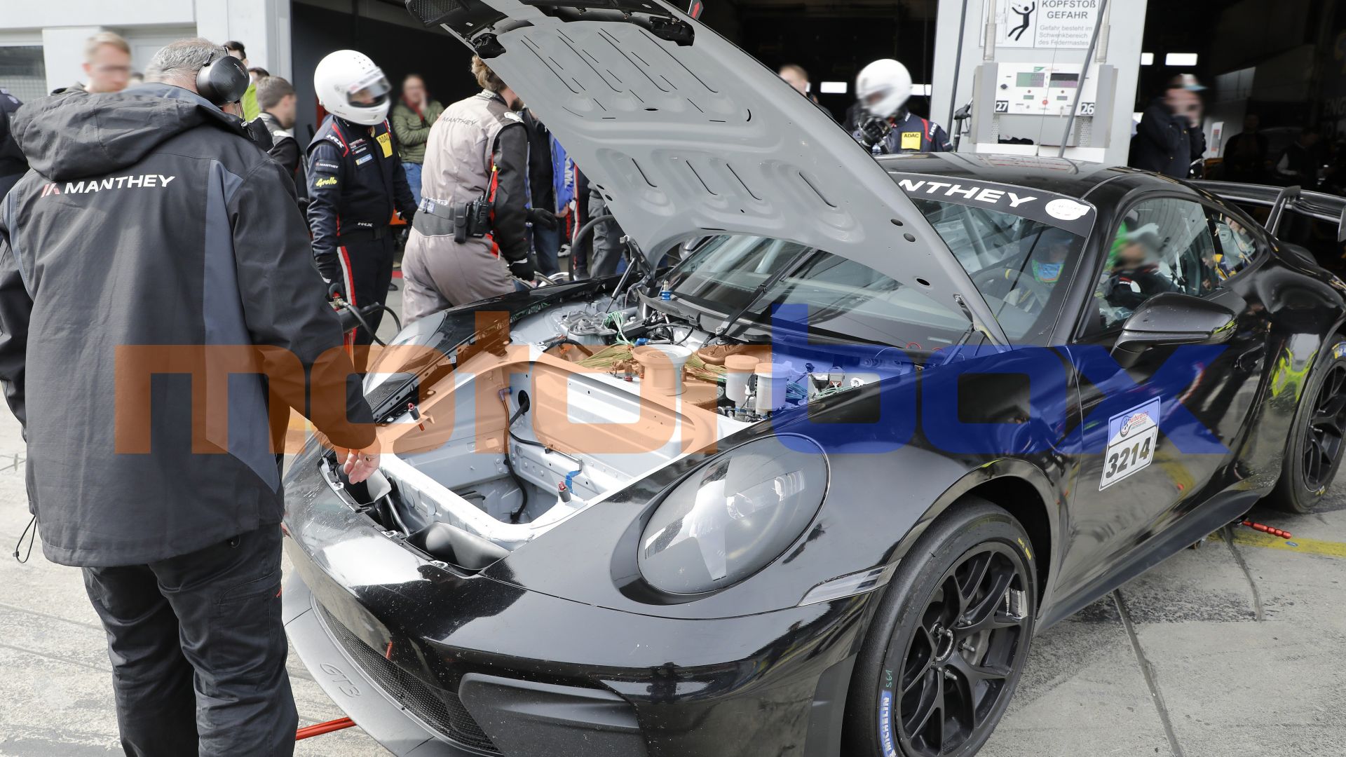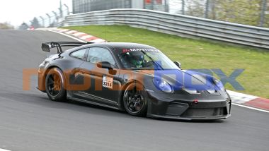 Le nostre spie a bordo pista sostengono poi che il canto di questa 911 non fosse quello profondo e metallico del 4.0 litri della GT3 Cup, ma piuttosto avesse un timbro identico a quello del 3.8 litri boxer che spinge l'attuale Cayman GT4 RS.