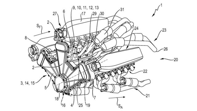 Sebbene la casa automobilistica tedesca abbia presentato domanda di brevetto lo scorso anno, il documento è stato pubblicato solo in questi giorni e rivela un complesso motore W12 con tre bancate di cilindri. Si tratta di un’architettura che ricorda quella dei motori Bentley, ma con soluzioni tecniche molto diverse.