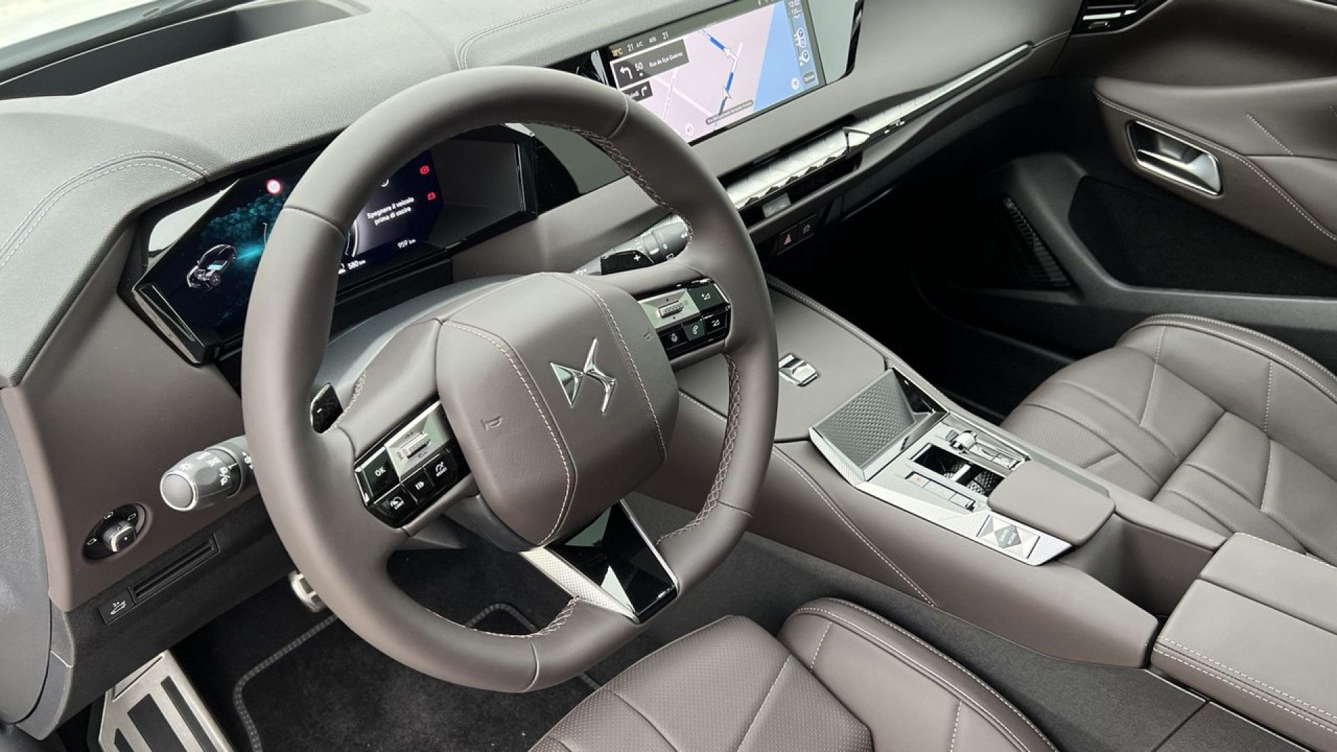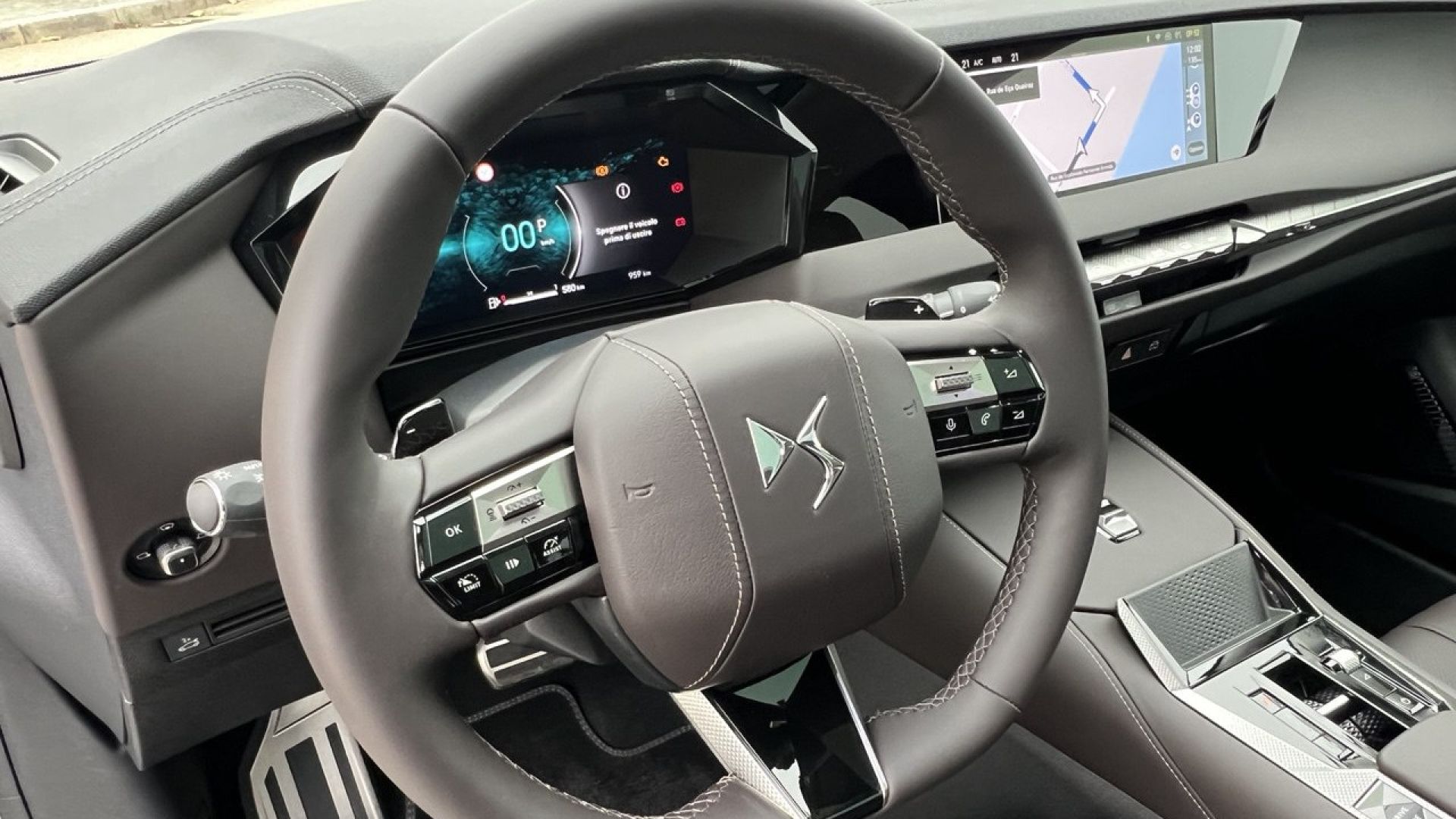 L’abitacolo è stato rivisto con un layout meno complesso. Davanti al guidatore c’è il quadro strumenti digitale da 10,25”, accompagnato dal display centrale da 10”, che gestiscono il sistema d’infotainment DS Iris System con GhatGPT. Se volete esagerare, a richiesta è disponibile anche l’head-up display esteso con proiezione su 21” di parabrezza e realtà aumentata. Uno strumento chiaro e ben leggibile anche con la luce del sole negli occhi e che mi ha aiutato a trovare la strada giusta sulle sconosciute statali del Portogallo dove si è svolto il test.