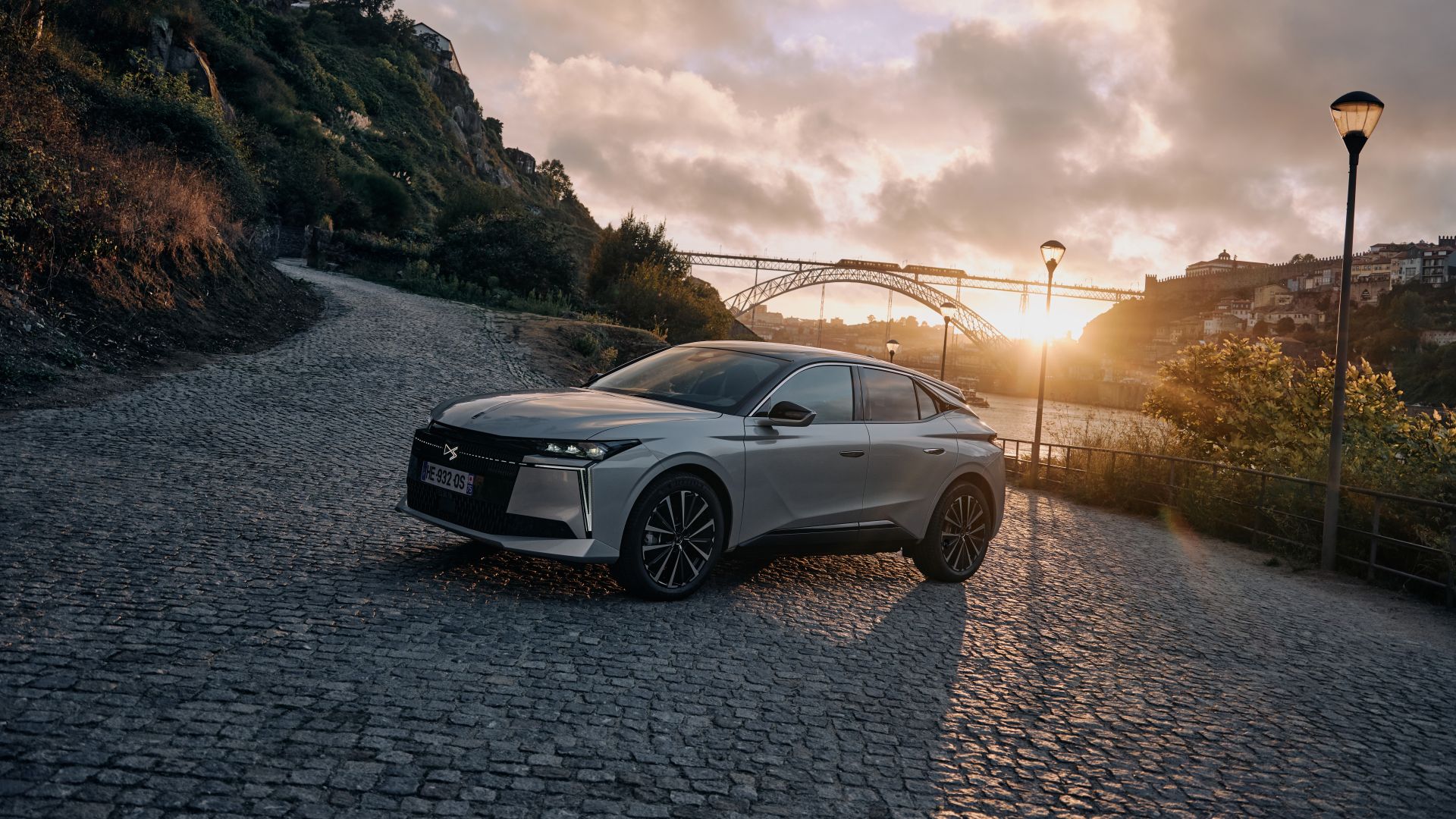 Nuova DS N° 4: la versione elettrica E-Tens con alle spalle la città di Porto in Portogallo