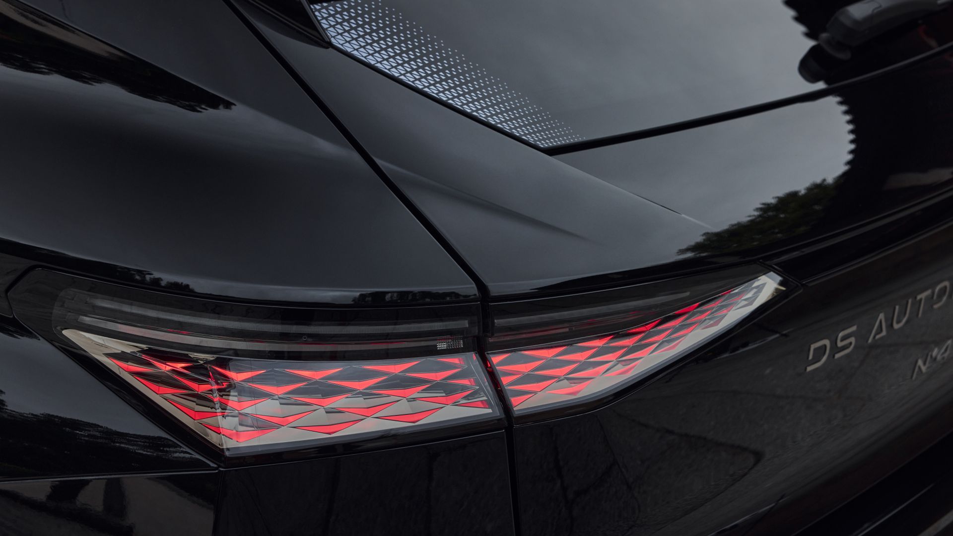 Innanzitutto, trovo che lo stile spigoloso del precedente modello qui si evolve in tratti ancora più decisi grazie al nuovo frontale del tutto ridisegnato. Mi piace la griglia nera più ampia, che ospita una firma luminosa a LED con il logo DS illuminato. L’auto sembra più larga grazie ai parafanghi muscolosi e alle ruote che possono essere da 19” o da 20”.