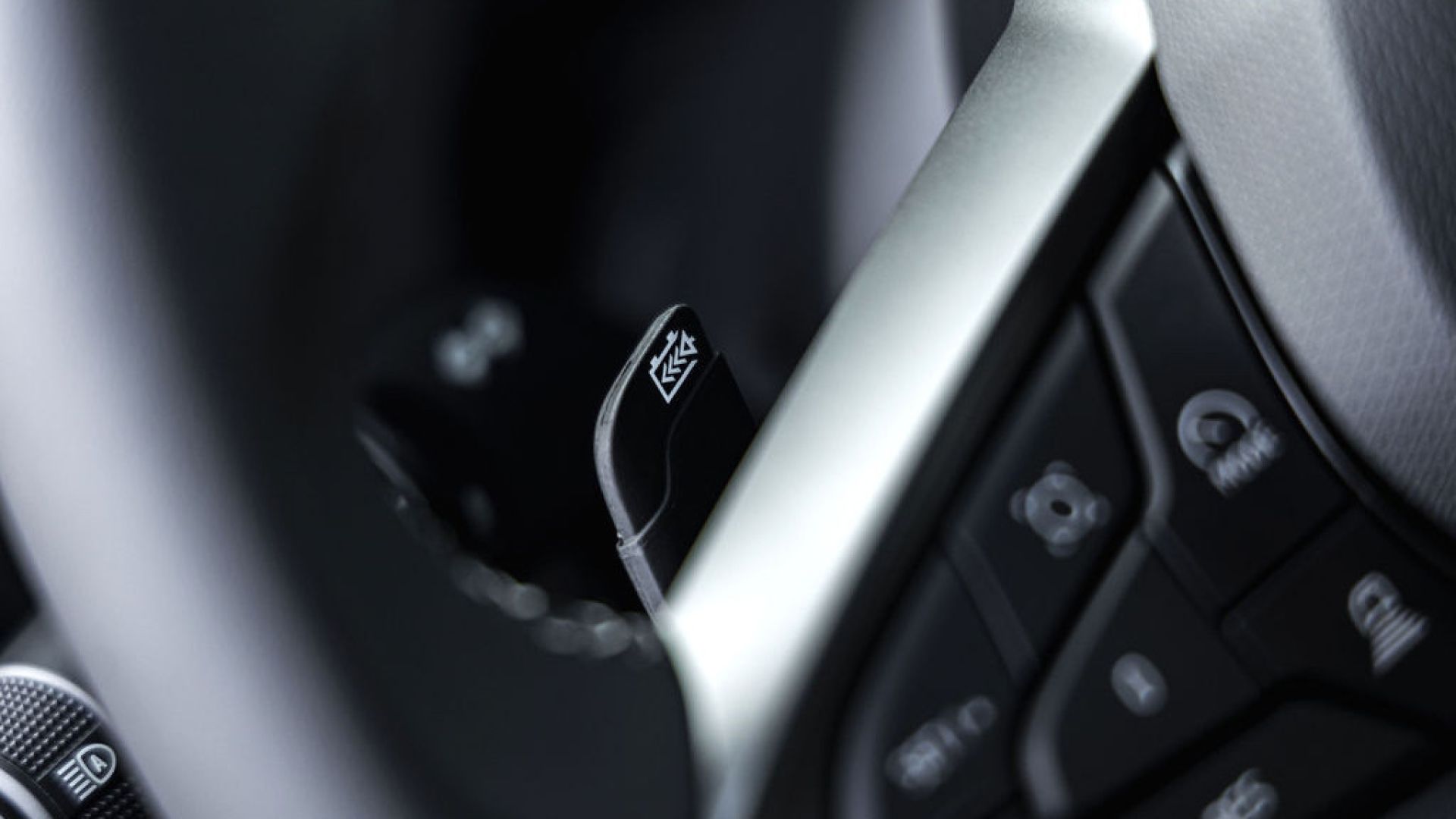 Voto positivo ai comandi analogici del clima, e alle palettine della frenata rigenerativa con funzione “one-pedal” presenti sulla Techno. Voto meno alle conosciute leve per selezione della marcia e tergicristallo dietro al volante, che interferiscono con il satellite per comandare l’autoradio. Una posizione alla quale continuo a non abituarmi.