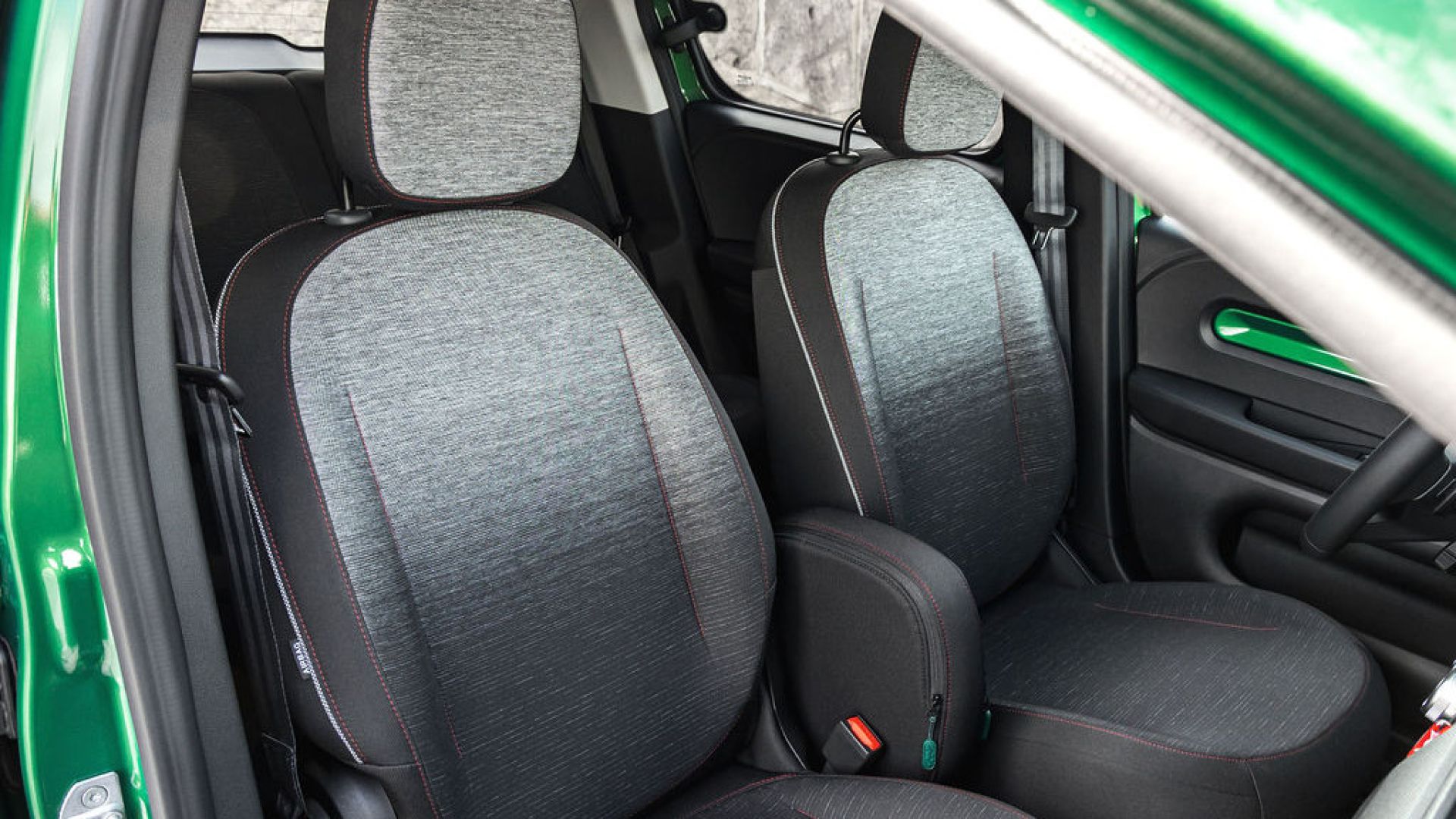 L’ispirazione alla “prozia” non termina ovviamente con il design, poiché anche gli interni sono una piccola/grande celebrazione. Lo spazio per quattro è buono, si toccano materiali robusti anche se spesso rigidi un po’ ovunque come per plancia, portiere e consolle centrale. Però tutta la vivacità dell’auto torna con le modanature in tinta carrozzeria, i ricami colorati di sedili e tappetini e tutta la praticità di una volta grazie ai numerosi vani, per una capacità di ben 19 litri.