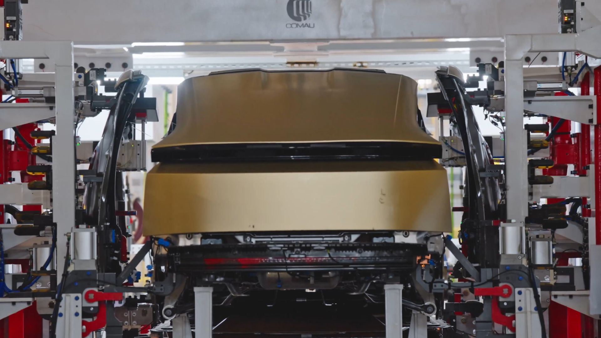 Auto divise in macro-moduli, assemblate in parallelo, unite da megacasting e incollaggi strutturali che tagliano tempi e costi. Una sorta di catena di montaggio 2.0, pensata per produrre un’auto ogni dieci secondi.