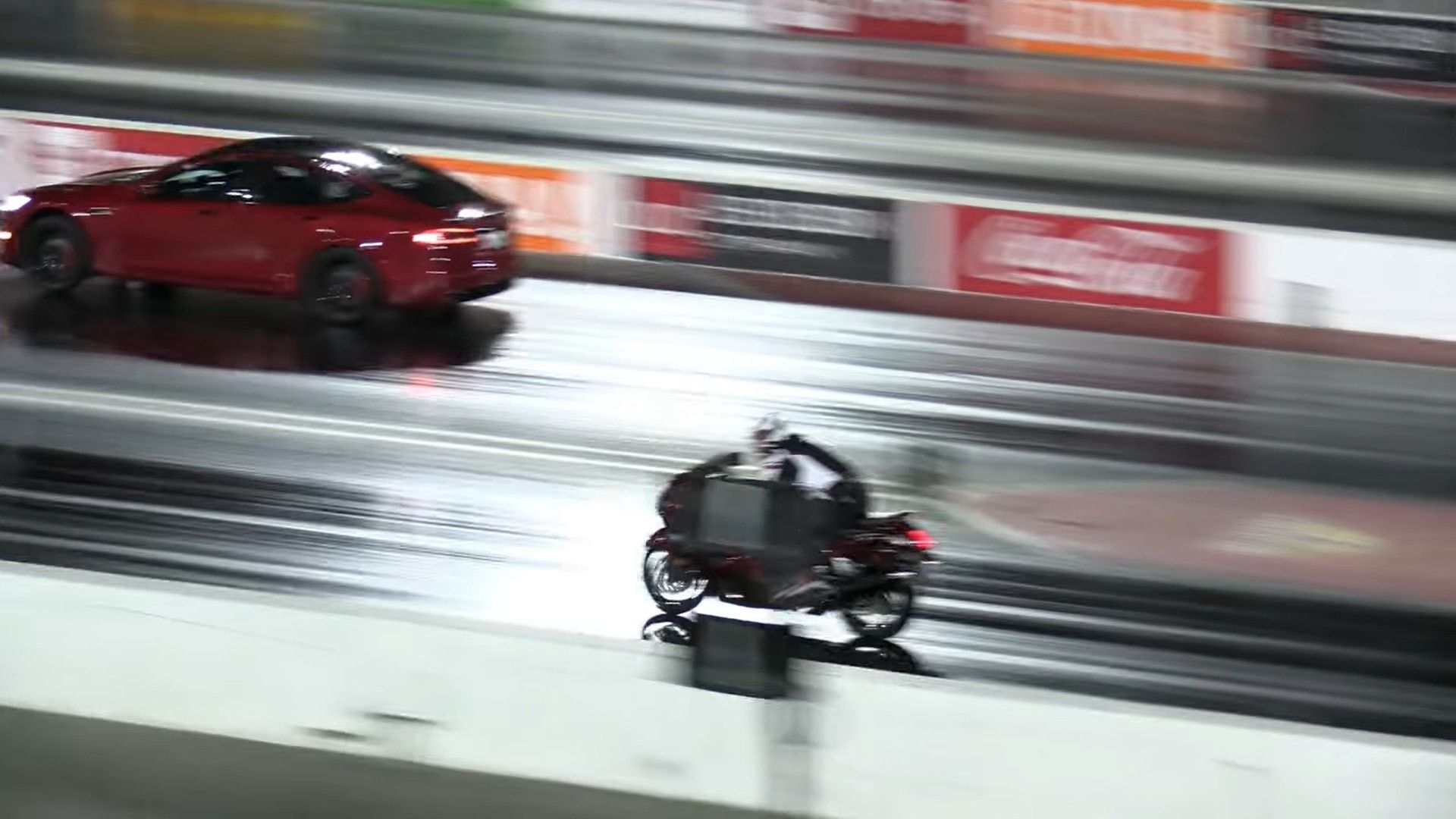 Primo round: il centauro parte come se stesse ancora imparando a usare la frizione, cambi di marcia a casaccio e start da dimenticare. La Tesla ringrazia, parte in testa e non si volta più: 10,04 secondi contro un imbarazzante 11,7 della moto. Promosso il silenzio, bocciato il pilota.