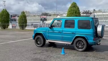 Slalomper evidenziare l'agilità inattesa del fuoristrada Mercedes-AMG G 63 e del gemello elettrico G 580 EQ.