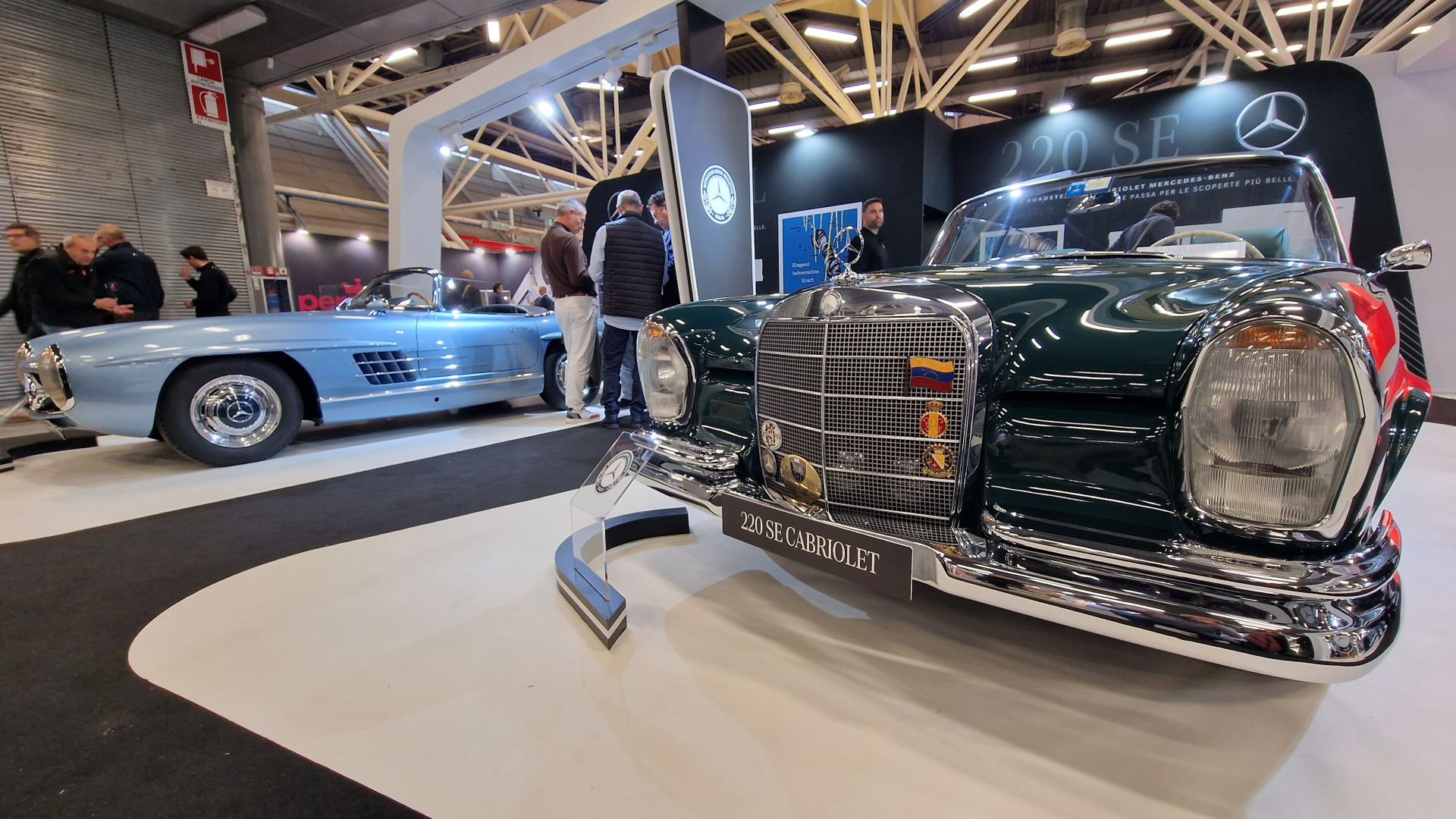 STELLA PIÙ BELLA Anche le Case sono da anni parte attiva di Auto e Moto d’Epoca, come Mercedes che per la edizione 2024 porta una carrellata di scoperte. Dalla 300 SL, un pezzo unico, uno dei rari prototipi Mercedes sopravvissuto, realizzato sul telaio di una 300 SL Gullwing preparata per le competizioni. E poi una elegantissima cabriolet della serie W111, prima auto con una cellula di sicurezza passiva e la carrozzeria con zone a deformazione controllata per assorbire l’energia di eventuali urti, piantone di sterzo collassabile e la prima Mercedes con la Stella sulla calandra pronta ad abbassarsi in caso di urto con un pedone. La terza cabriolet sullo stand Mercedes è una E320 serie W124 che continua la strada della sicurezza inaugurata dalla W111, con rollbar a estrazione automatica in caso di incidente. A chiudere il ciclo con lo stato dell’arte Mercedes per sicurezza e prestazioni una CLE 53 AMG.