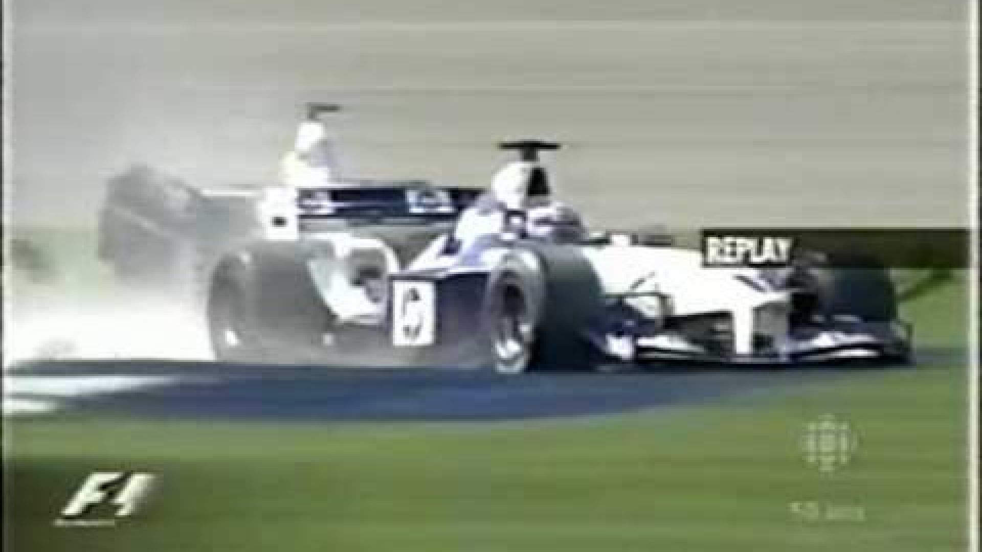 Nel corso del GP d'Argentina Ralf Schumacher prova a infilare all'interno Giancarlo Fisichella, ma non c'è spazio. I due si toccano e ad avere la peggio è l'italiano.