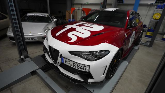 29 fa - Lo youtuber Misha Charoudin riporta la Giulia GTAm al Nürburgring per un test con lo splitter esteso