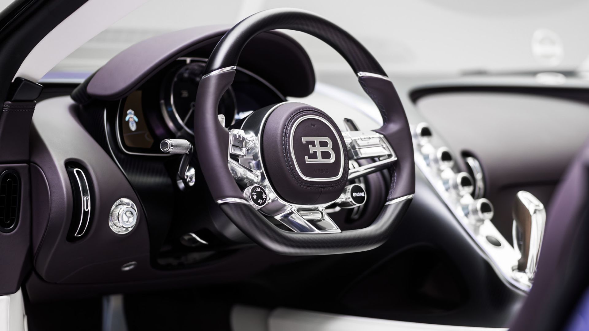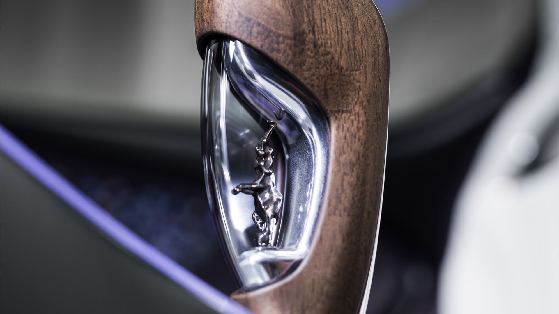 Sulle portiere, il motivo floreale sembra ''volare'' via, seguendo le linee dell'abitacolo. E per non dimenticare la tradizione, nel selettore del cambio è incastonato l'iconico ''Elefante Danzante'' di Rembrandt Bugatti, protetto da un vetro color violetto.