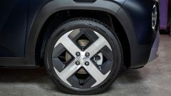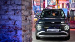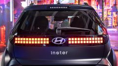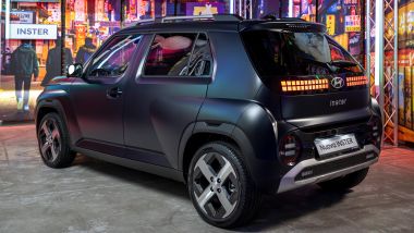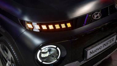 Il look ci somiglia, ma le dimensioni aumentano. Inster ha infatti una lunghezza di 3,84 metri, un passo allungato di 180 mm e un bagagliaio che va da 280 fino a 351 litri, facendo scorrere i sedili posteriori, a tutto vantaggio di praticità e versatilità. La larghezza è di appena 1,61 m, ma a colpo d'occhio Inster sembra più grande, se non lo guardi perfettamente di fronte, grazie a sapienti bombature sui passaruota che giocano coi raggi di luce per disegnare tonici muscoletti attorno alle grandi ruote da 17 pollici. Queste ultime, proprio come le luci, riprendono il tema dei pixel, mentre ci pensano due grandi luci rotonde nel fascione anteriore a dare all'auto uno sguardo simpatico.