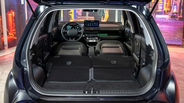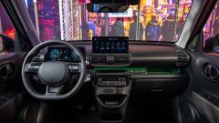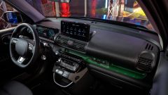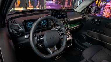 SALIAMO A BORDO Inster sarà disponibile in configurazione a 4 o a 5 posti. All'interno, lo spazio è decisamente ben sfruttato e progettato addirittura per consentire di dormire a bordo: con tutti i sedili reclinabili a dare un piano di carico piatto che può sostenere efficacemente un materasso. Innovativi gli arrredi, con un sedile di guida che integra i portabibite nella seduta, il pavimento piatto sia dietro sia davanti e una console centrale molto compatta che permette di passare agevolmente dal sedile di guida a quello del passeggero. I pannelli porta integrano poi delle parti sostituibili per eventuali accessori come portafoto o porta-carte di credito. Bella la plancia, con due display digitali da 10,25''.
