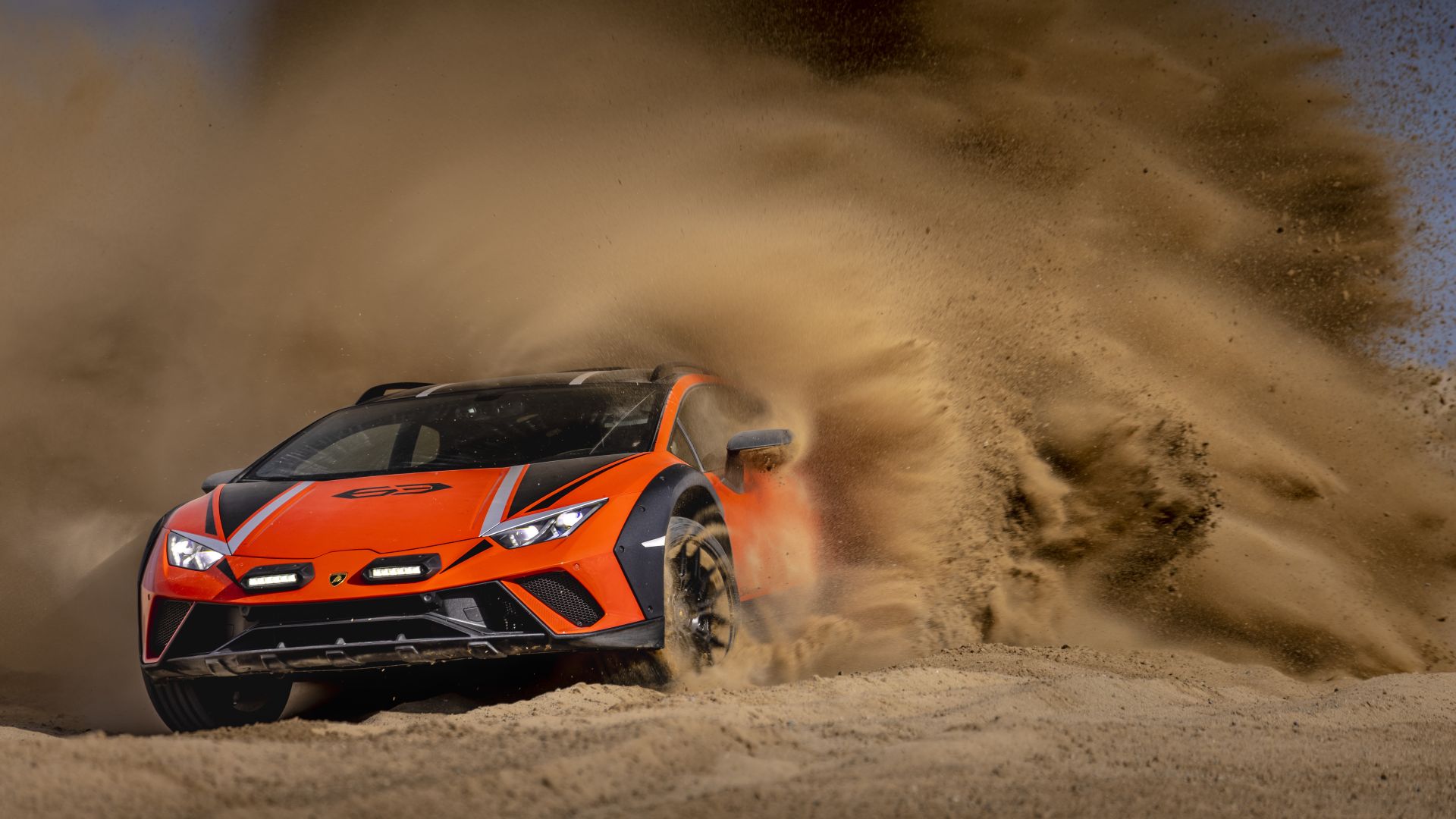 LO STERRATO È IL SUO HABITAT Il luogo scelto per il test è il Chuckwalla Valley Raceway, un circuito nel deserto della Coachella Valley, che unisce una pista asfaltata a un tracciato sterrato, per una lunghezza complessiva di circa 4 km. L’aspetto esteriore dell'auto esprime già al primo sguardo il carattere avventuroso della Sterrato. L’altezza da terra è stata aumentata di 44 mm rispetto alla Huracán Evo, per garantire una maggiore escursione delle sospensioni, così come l’ampiezza delle carreggiate anteriore (+30 mm) e posteriore (+34 mm). Inoltre, la protezione sottoscocca anteriore in alluminio, i brancardi rinforzati, il diffusore posteriore e i robusti passaruota oltre a proteggere il corpo vettura ne enfatizzano la muscolarità.