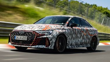 SOVRA-STANTE ''Nuova Audi RS 3 entra in curva con straordinaria facilità'', spiega Stippler. ''Grazie al Torque Splitter, manifesta un comportamento tendenzialmente sovrasterzante e una gestione raffinata come mai prima d’ora della trazione integrale quattro. Così facendo, il sottosterzo è pressoché assente ed è possibile affrontare l’uscita di curva accelerando con grande anticipo”. Ma se RS 3 è la nuova reginetta dell'Anello Nord, buona parte del merito è anche del celebre 5 cilindri 2.5 TFSI, forte di 400 CV e 500 Nm di coppia e caratterizzato da un sound ancora più marcato. Senza dimenticare gli pneumatici semi-slick Pirelli P Zero Trofeo R e i freni carboceramici.
