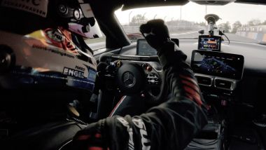 COME HA FATTO IL RECORD Il nuovo record è stato ottenuto con una temperatura dell'aria di 15 gradi Celsius e l'asfalto a 20 gradi. Dietro al best lap c'è anche una sapiente gestione del recupero di energia e del boost elettrico nelle varie sezioni della pista. Per fare ciò, il pilota ha utilizzato il sistema Energy Flow Control (EFC) a quattro stadi dell'AMG ONE e in alcuni casi ha deliberatamente tolto il piede dall'acceleratore un po' prima del solito, secondo le indicazioni raccolte tramite il simulatore di guida di Affalterbach: ci ha pensato TÜV Rheinland a certificare che la AMG One fosse in condizioni standard, comprese le gomme Michelin Pilot Sport Cup 2 R MO fornite di primo equipaggiamento e sviluppate appositamente per la ONE. Un notaio ha poi confermato che il giro record era stato eseguito correttamente. Tanto per mettersi al riparo da polemiche.