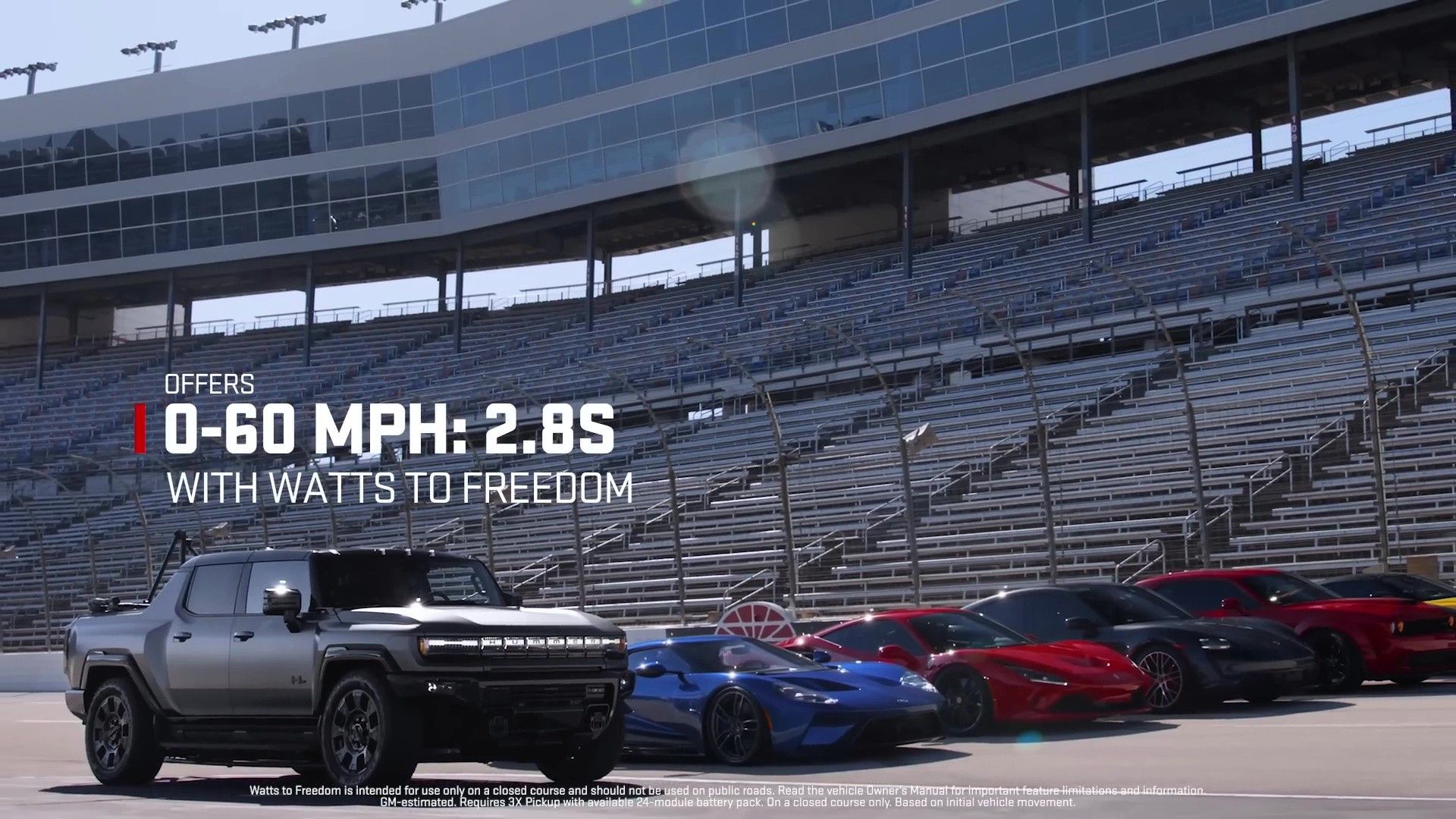 Nella modalità di guida più estrema, l’Hummer sprigiona fino a 1.160 CV e una valanga di coppia. Basta un tocco su “Watts to Freedom” e questo mastodonte elettrico balza da 0 a 97 km/h in 2,8 secondi, lasciando le cinque supercar sullo sfondo.