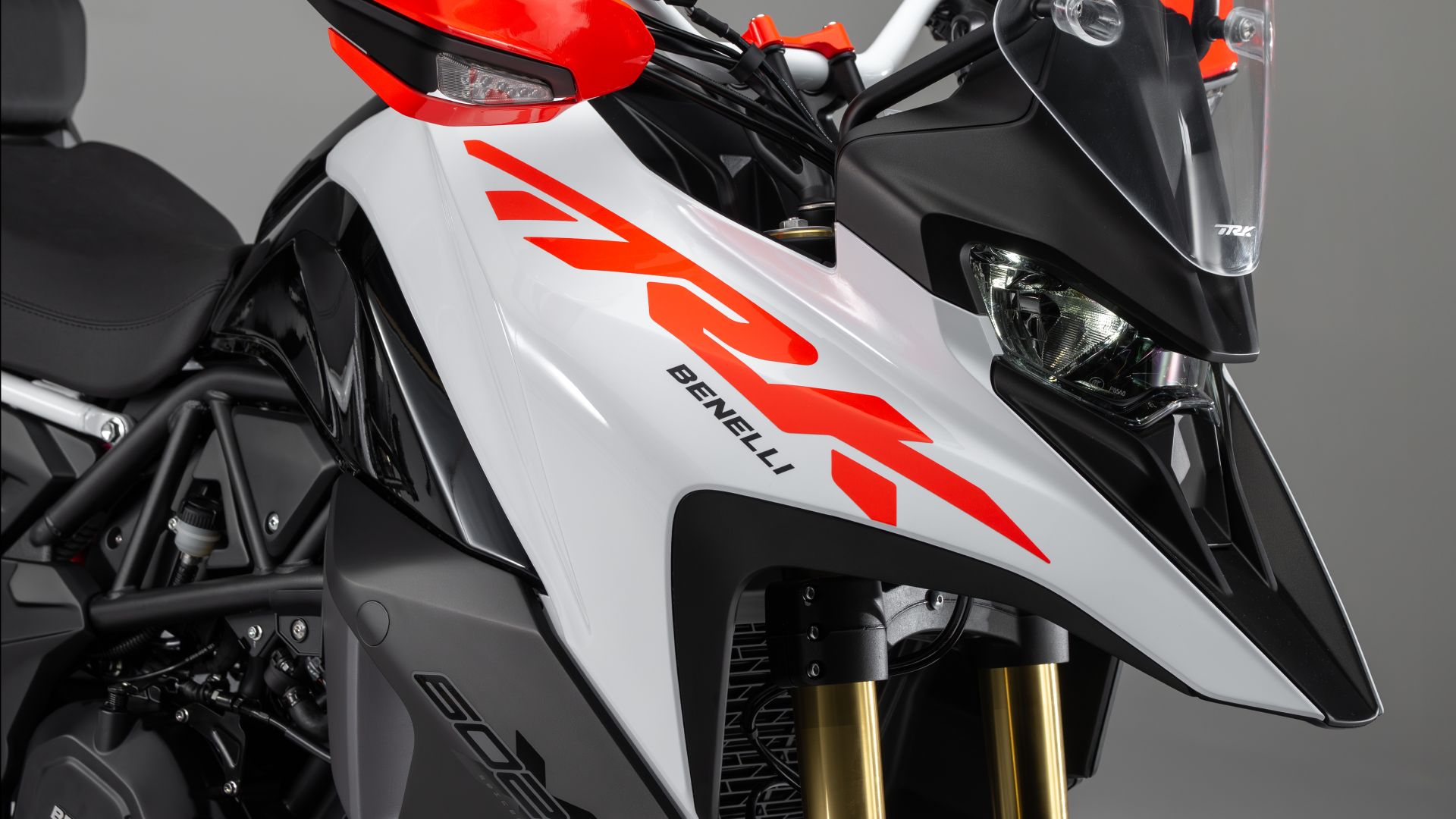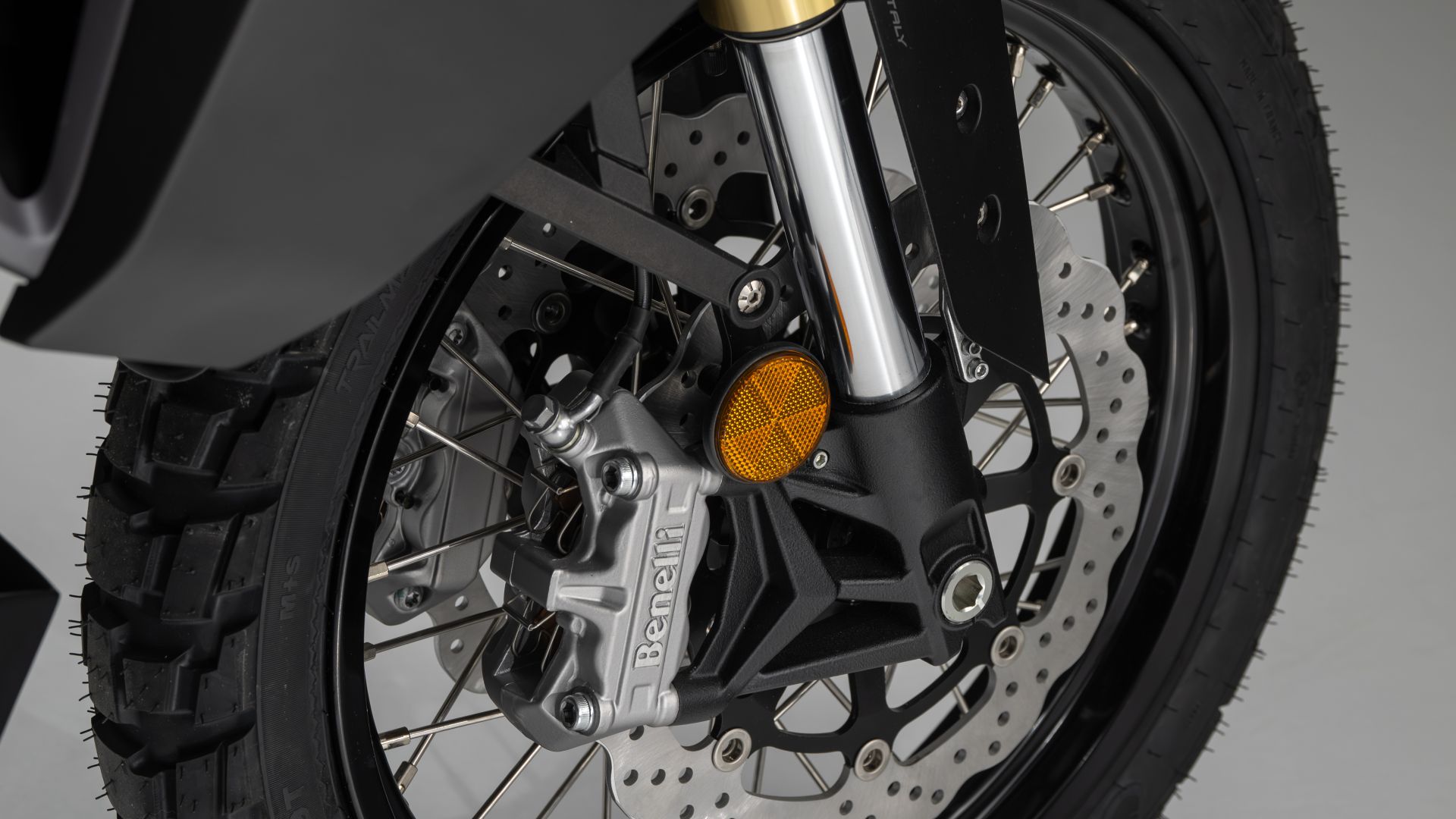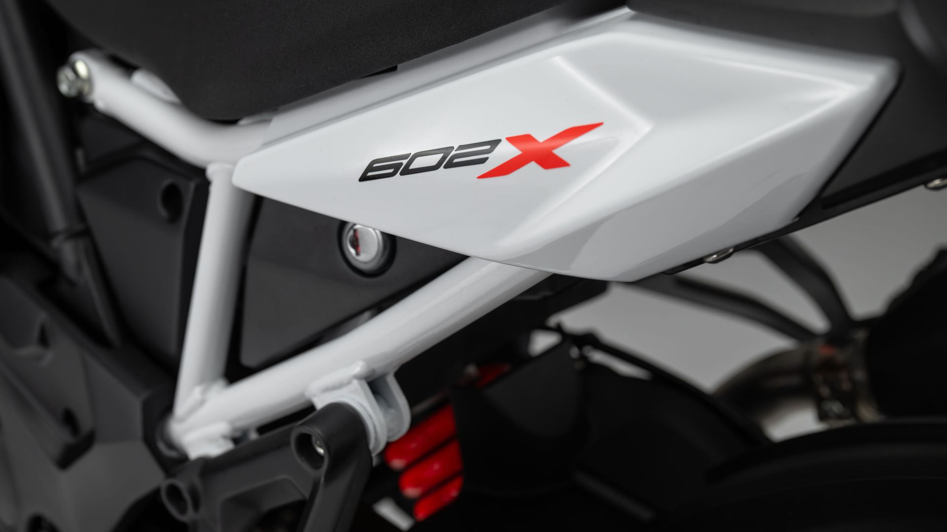 Sul fronte ciclistica, la TRK 602 X sfodera un telaio in tubi di acciaio a traliccio ma arriva, a sostegno del frontale e della torretta della strumentazione, una nuova struttura, in tubi di alluminio. Il telaietto reggisella posteriore, più leggero del precedente, permette un’altezza sella di 825 mm. Inedita la forcella Up-side down da 43 mm con escursione ruota di 140 mm e il forcellone in alluminio con monoammortizzatore regolabile nel precarico molla e nel freno idraulico in estensione e compressione (escursione di 173 mm). Anche l'impianto frenante si aggiorna e sceglie un doppio disco da 320 mm con pinze radiali a 4 pistoncini, mentre al posteriore il disco è da 260 mm con pinza flottante a singolo pistoncino. Benelli presenta solo la versione X della 602, quindi con cerchi a raggiin lega di alluminio da 19” e 17”, che calzano pneumatici 110/80 e 150/70. Il peso della TRK 602 X? Di 235 kg in ordine di marcia (serbatoio da 20 litri).