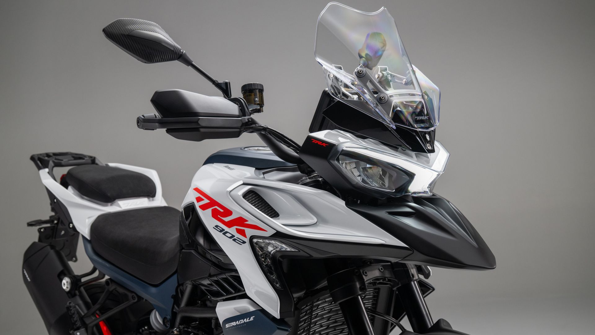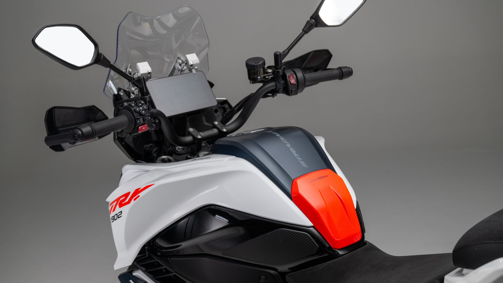 In viaggio, la TRK 902 Xplorer gioca la carta della tecnologia: display TFT da 7”, Bluetooth e Wi-Fi integrati, navigazione turn-by-turn e mappe cartografiche, ABS e Traction Control disinseribili, Cruise Control, TPMS, Quickshifter bidirezionale, e pure sella e manopole riscaldabili su tre livelli.