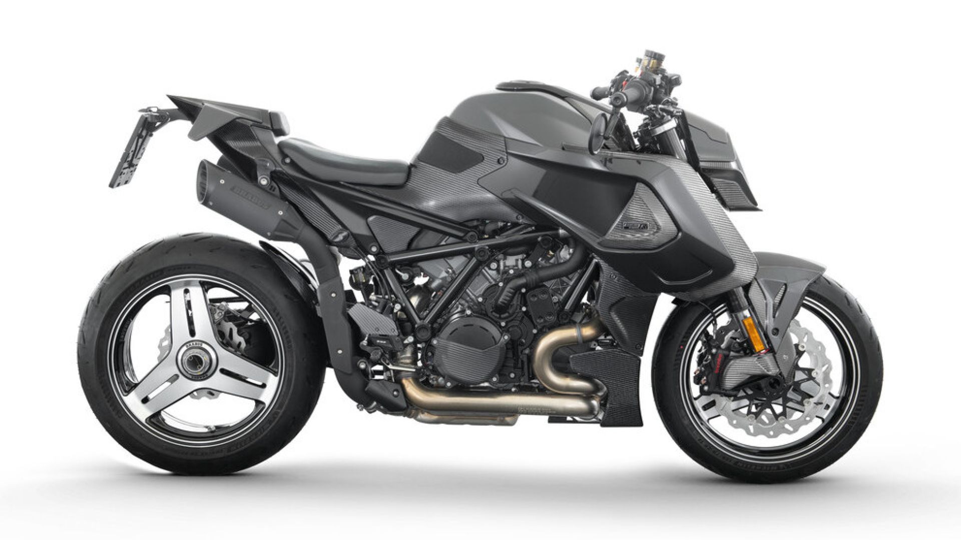 La moto arriva a tre anni dall'ingresso di Brabus nel mondo delle moto e nasce sulla base della KTM 1390 SUPER DUKE R EVO. Adotta sovrastrutture realizzate in fibra di carbonio con finitura lucida. La colorazione “Midnight Veil” evoca quella delle auto Brabus.