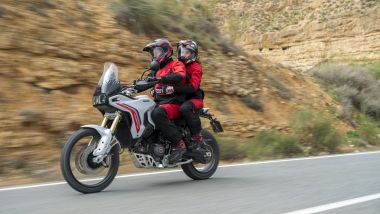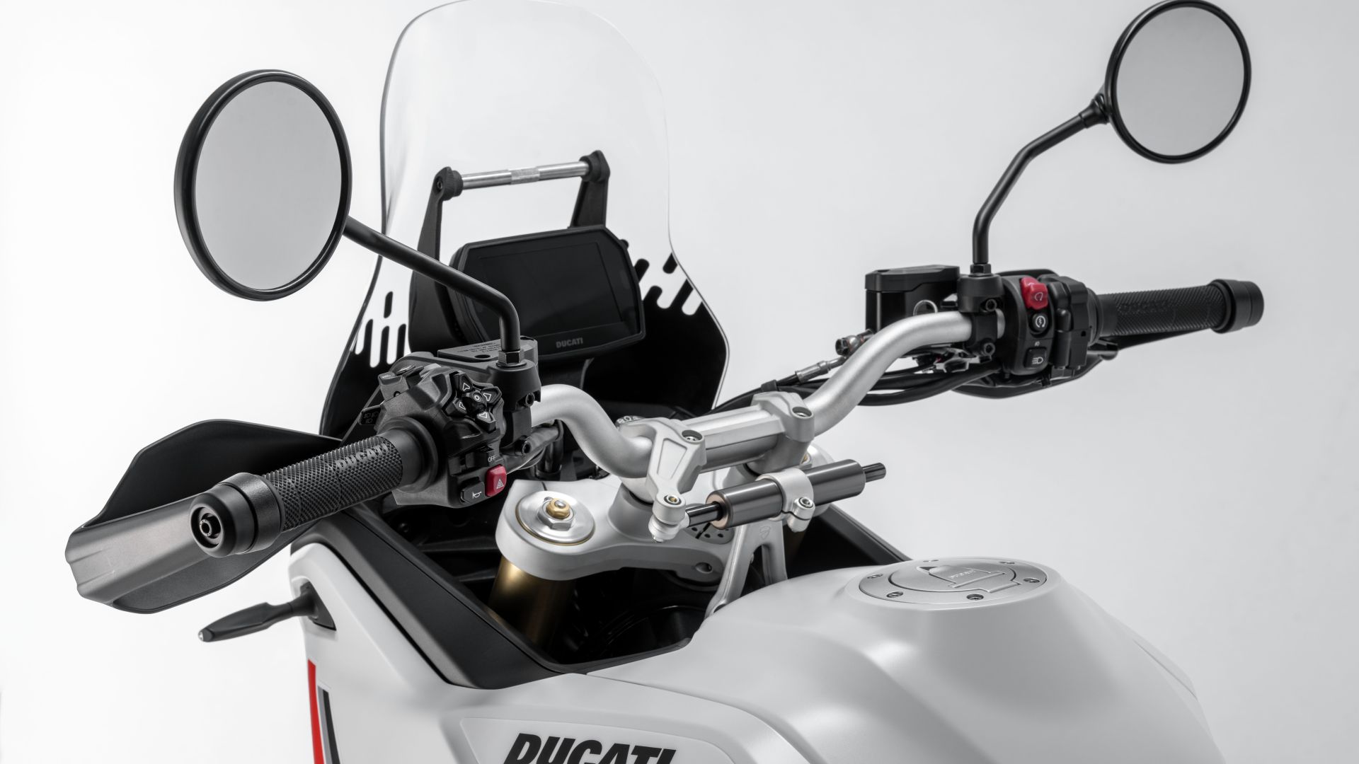 La nuova DesertX 2026 può contare su una nuova ergonomia, con la posizione – dicono da Ducati – da vera moto offroad: manubrio largo, moto stretta tra le gambe, leggera e comunicativa. Il nuovo triangolo ergonomico è stato definito arretrando le pedane e avanzando sella e manubrio, ottenendo una posizione meno seduta del pilota per migliorare la guida sportiva e il controllo della moto in fuoristrada. Complice anche il nuovo serbatoio in polimero da 18 litri, più snello e leggero, i movimenti in sella sono più facili (la sua struttura posiziona il carburante molto in basso, a vantaggio del baricentro). La sella di DesertX 2026 è a 880 mm da terra, ma l'altezza può essere ridotta fino a 840 mm con sella e kit sospensioni ribassate.